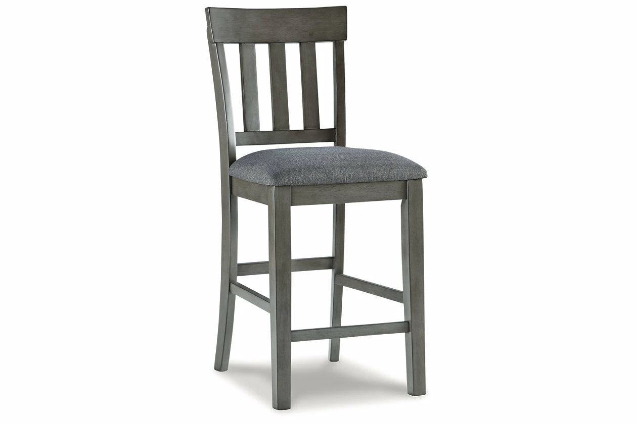 Cool and on-trend. This upholstered barstool sports a two-tone gray look for a contemporary-yet-casual feel. The cushioned foam seat in a gray textural fabric pairs seamlessly with the antiqued gray finish, while the contoured comb-back design adds a dash of geometric flair. With this chic seat, it’s easy to dine in style.