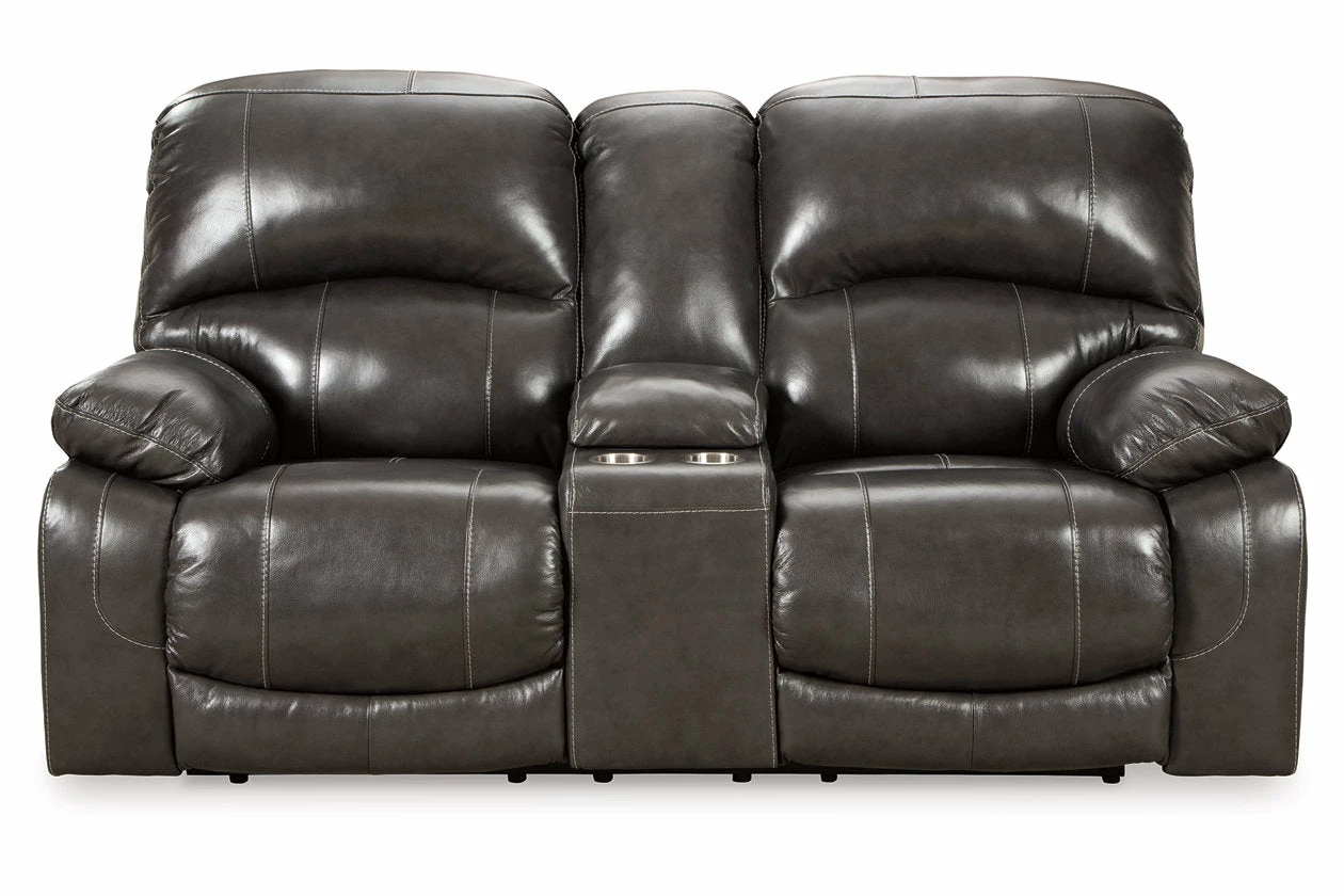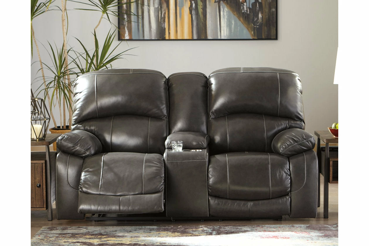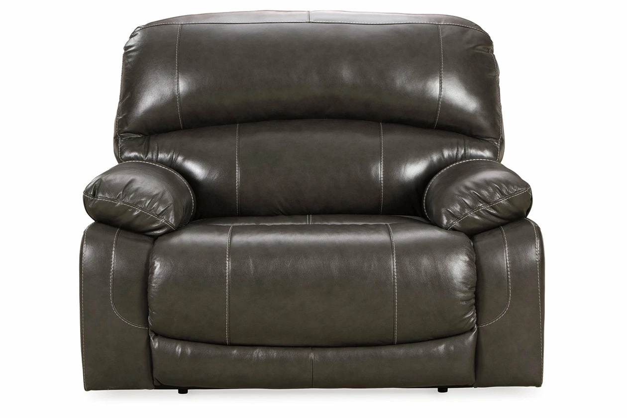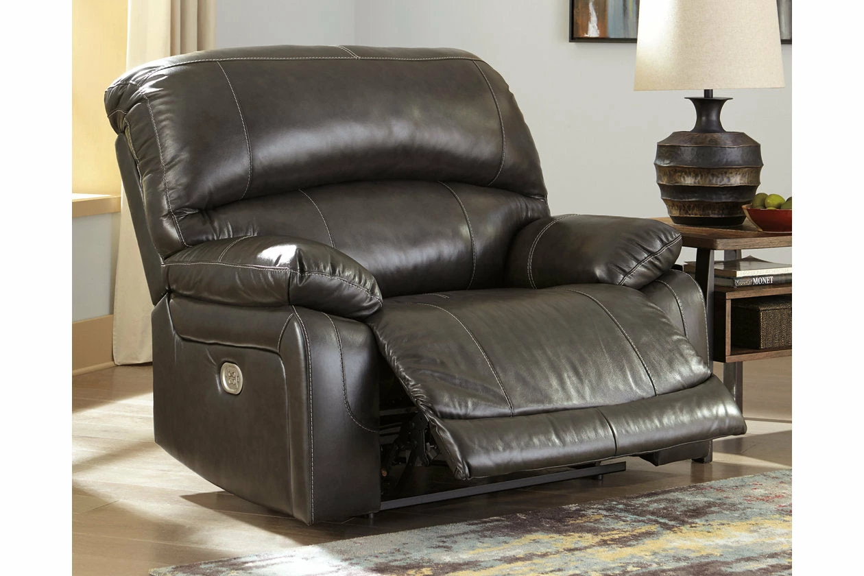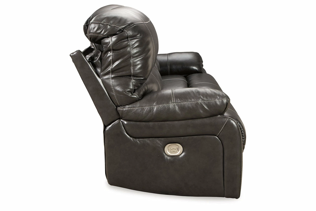 Fashion-forward style. Sumptuous leather feel and appeal. Total comfort at your fingertips. It’s all yours for the taking with this power recliner with adjustable headrest. Wrapped in an attractive gray upholstery, this decidedly contemporary power recliner tantalizes the senses in so many ways. Rest assured, combination leather and faux leather upholstery makes luxury affordable. Upping the comfort with 44″ high back styling, this power recliner truly caters from head to toe. An Easy Viewâ„¢ power adjustable headrest allows you to lean back while propping up your head—perfect for chilling out in front of the TV—while an extended ottoman lets you stretch out all the more. And with a USB port in the power control panel, you hardly have to move a muscle to stay powered up.