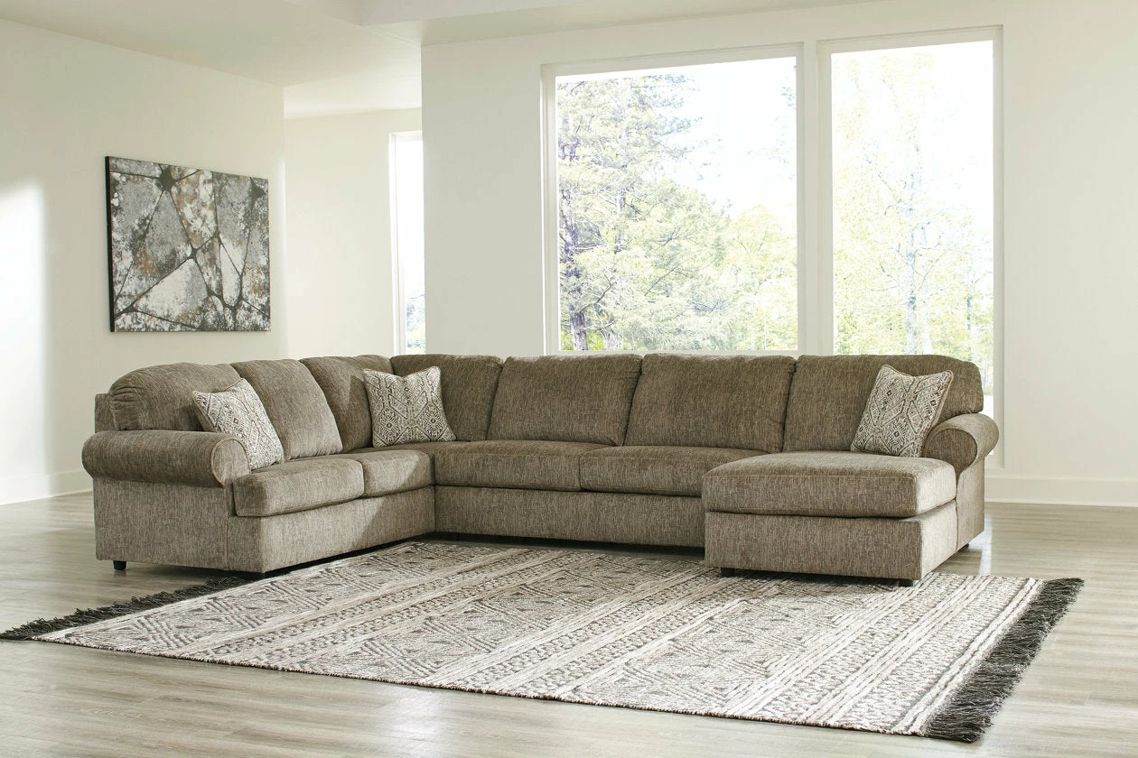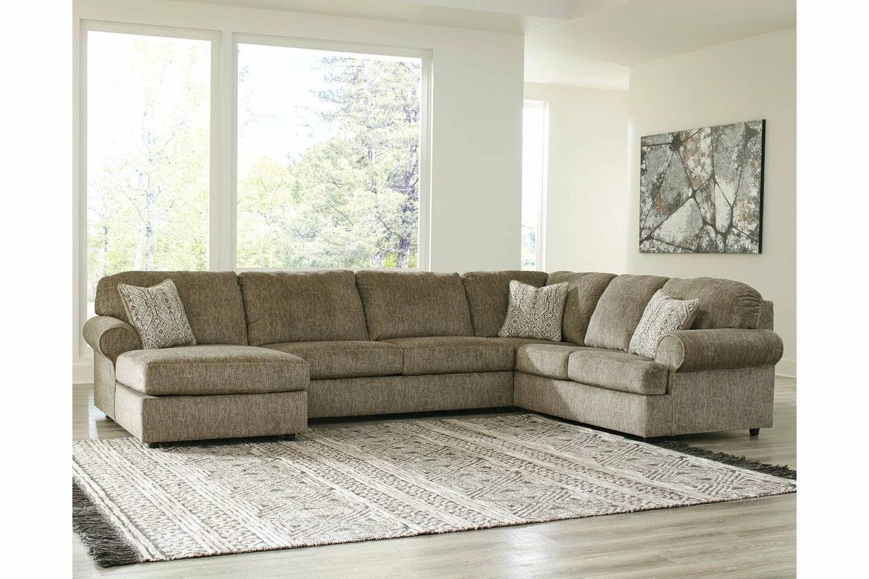 Providing plenty of space for social distancing, this sectional offers a beautifully put-together look for low-key relaxation. Be it for your main living space, furnished basement or family room, this exceptionally comfortable and generously scaled sectional offers a transitional sense of style that complements a wide range of decor. Standout elements include flared roll arms and a richly textural chocolate brown upholstery for neutral appeal.