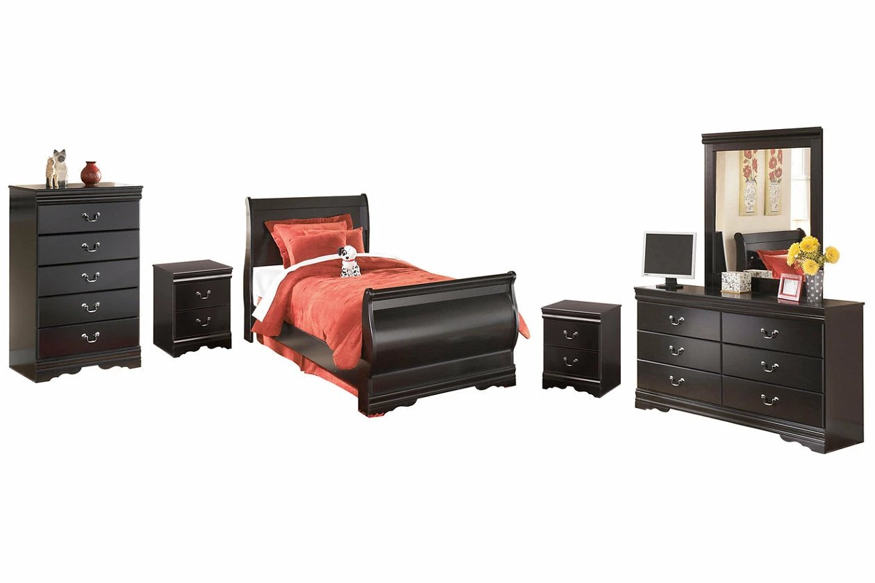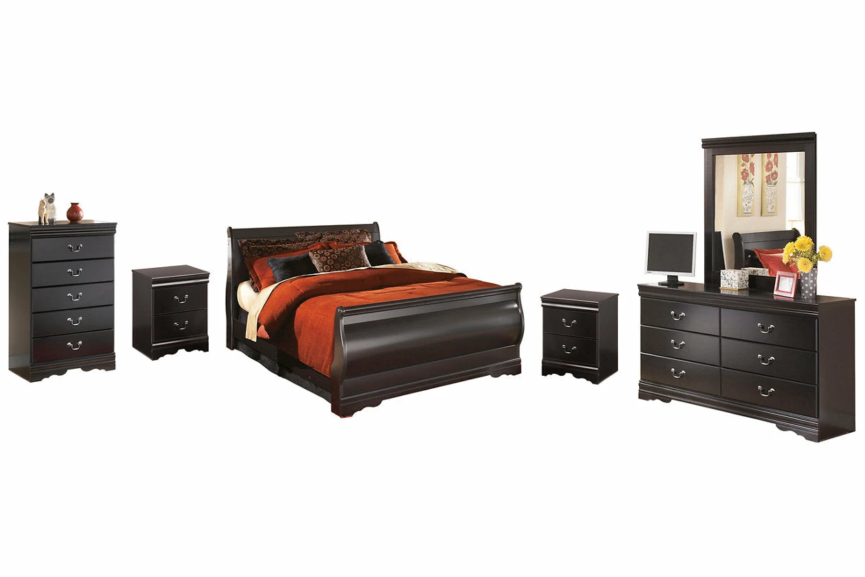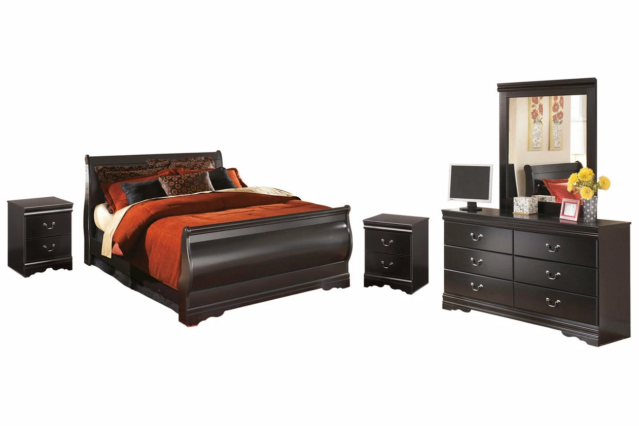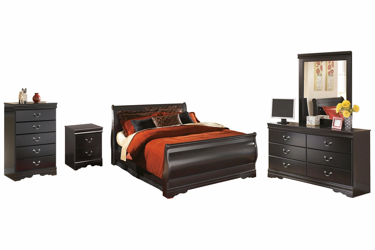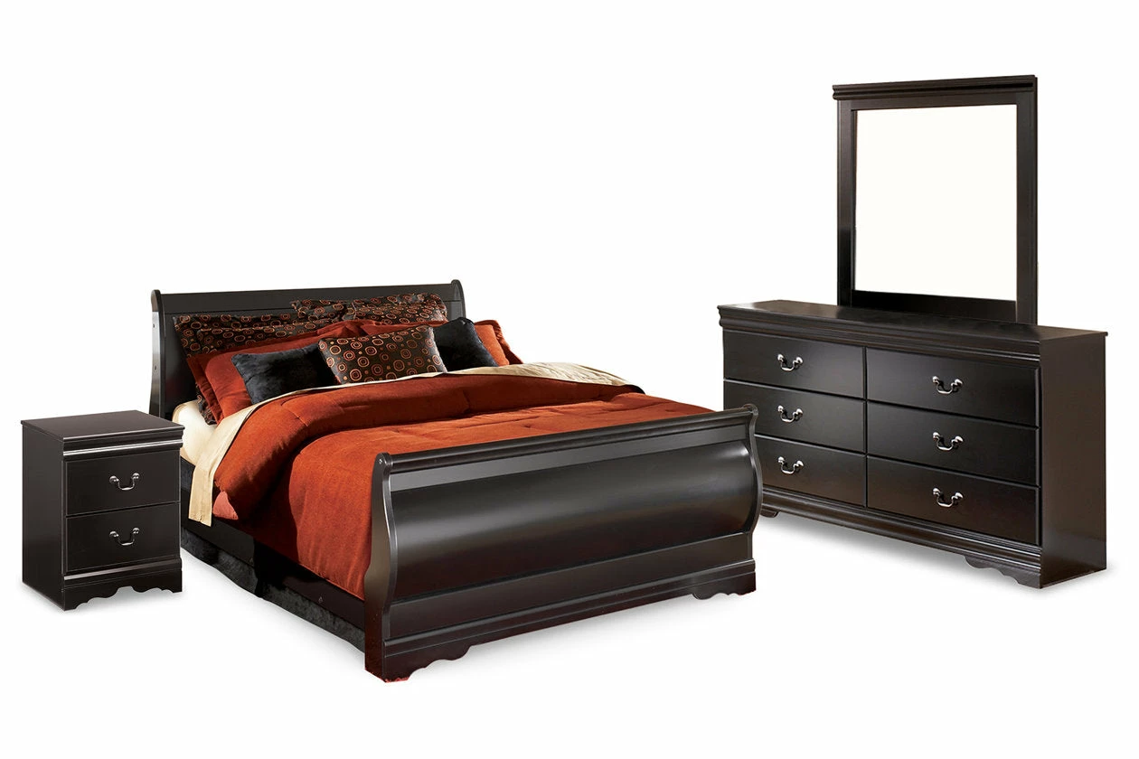 This bedroom set with sleigh bed, dresser/mirror and chest is the epitome of traditional decor. Louis Philippe-style moulding dates back to the mid-19th century when furnishings were lavish yet somewhat simple. Luxe finish adds a slightly modern touch. Smooth-glide drawers beautifully accommodate your wardrobe.