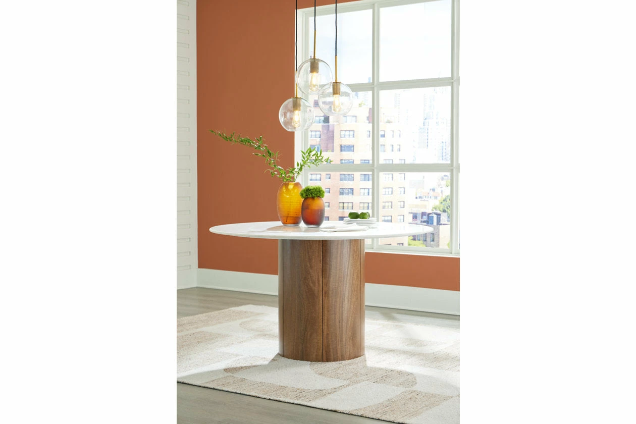 With its back-to-nature sensibility, this dining table is a natural fit for outfitting your modern space. A clean-lined design lets the beautifully organic quality of the mango wood shine through, complemented by the sleek refinement of its marble top. This delicious design is perfect for dining, family game night or conversations that last well into the evening.