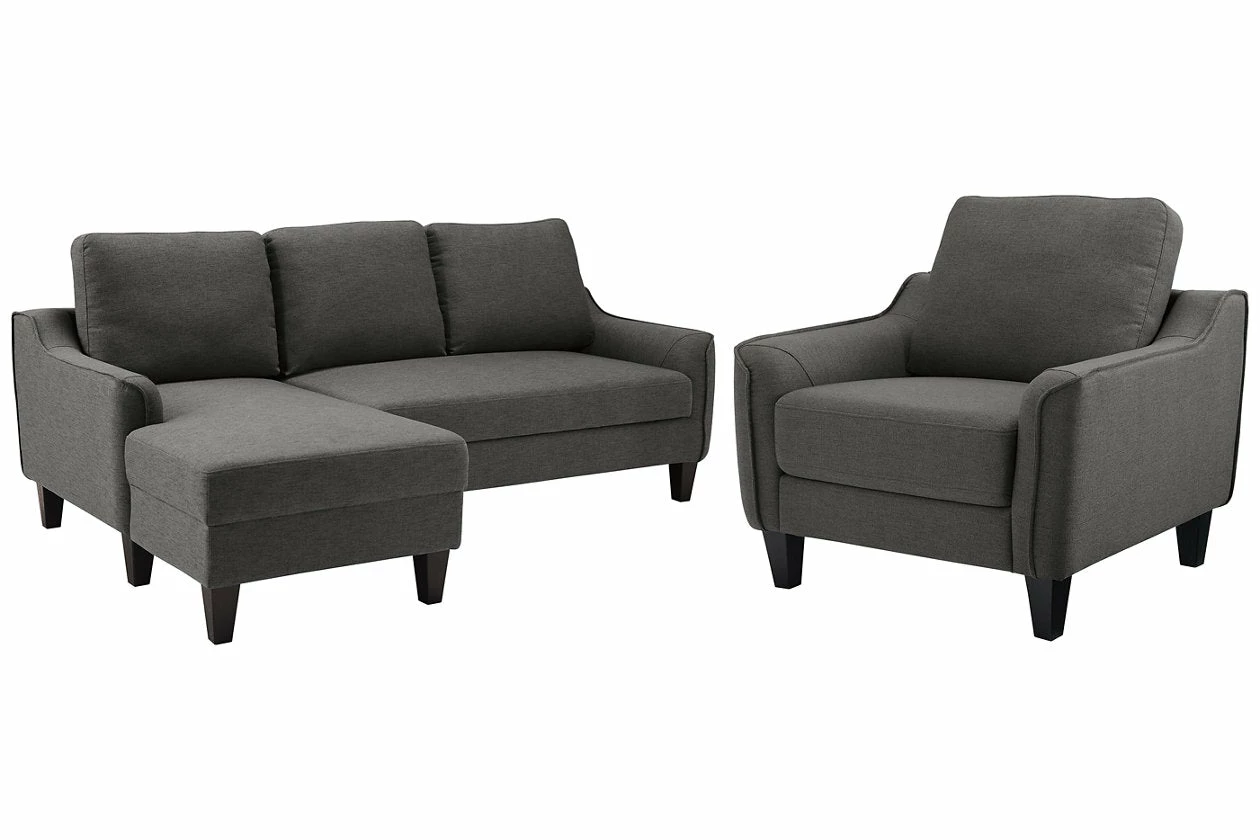 Small space living is looking better than ever with this living room set. This high-style ensemble with sofa chaise sleeper and chair entices with soft cushions and oversized pillow backs for a chic seating arrangement. Sporting sleek arms and friendly apartment sizing, the sofa chaise makes a fashionable first impression, and is quick to convert into a sleeper with the included pullout cushion.