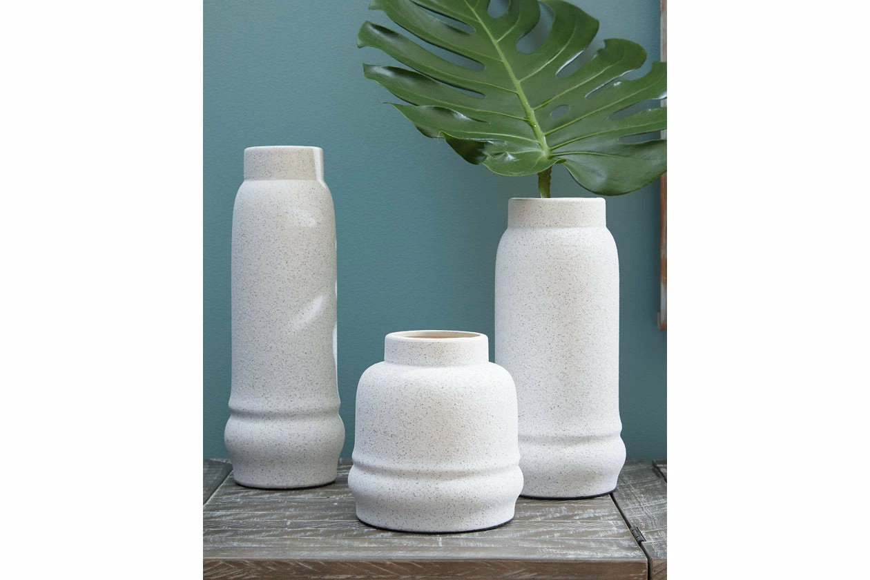 This set of textured white ceramic vases helps create amazing floral arrangements in your home. Add flowers and greenery for a look your guests will want to imitate.