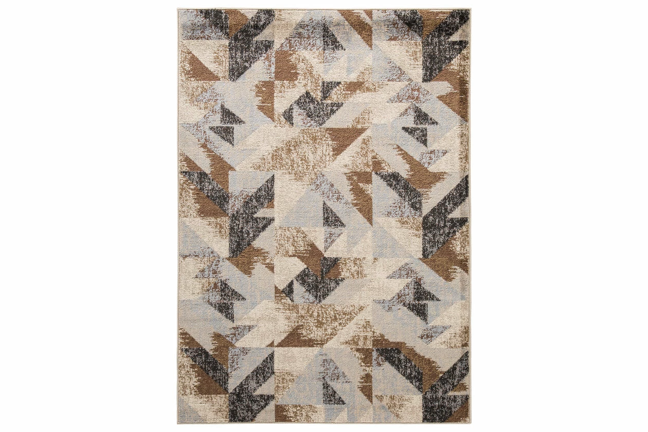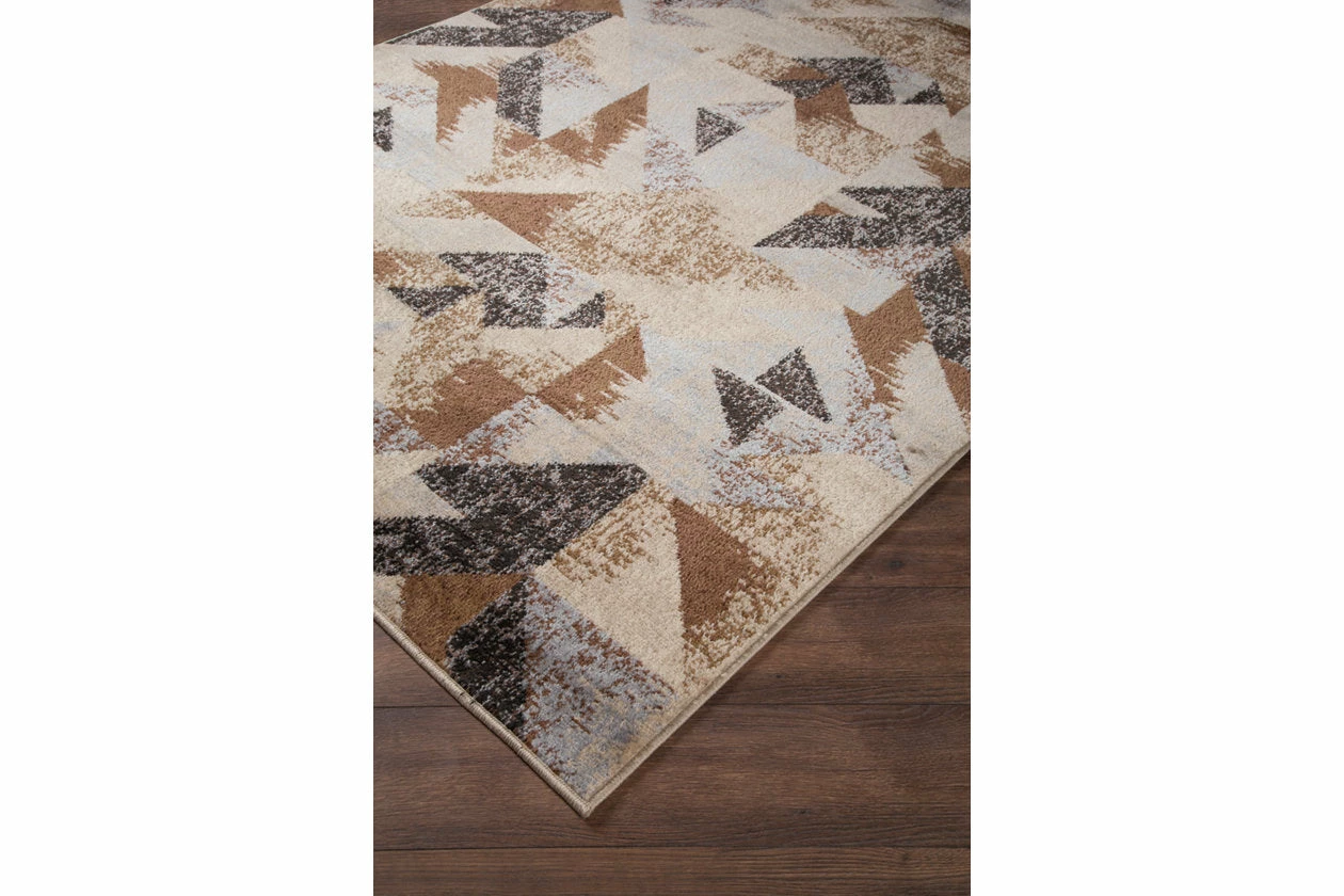 Bold yet subtle. That’s the beauty of this area rug. Its dynamic geometric pattern is downplayed by muted tones of gray, cream and shades of brown for a sense of earthy elegance.