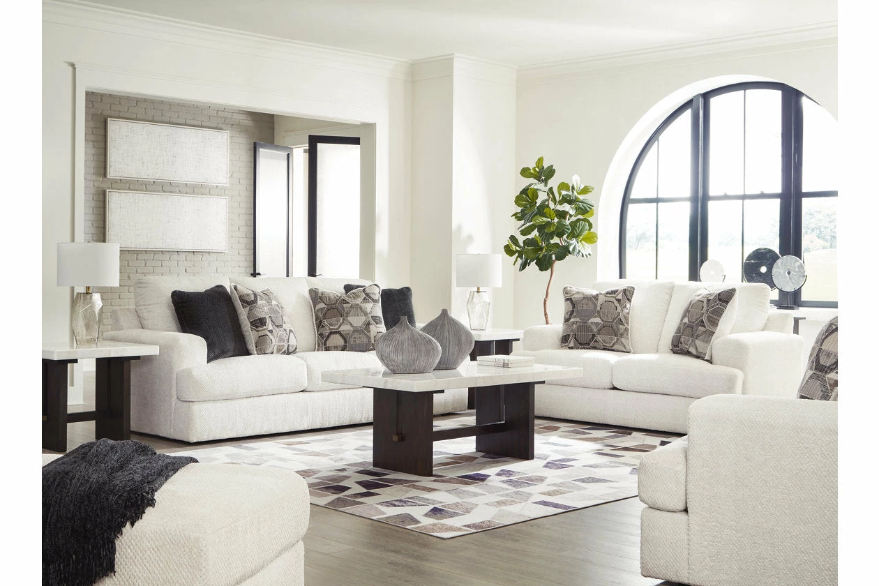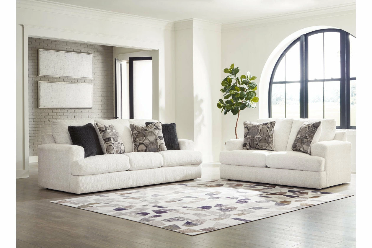 Craving casual refinement? This seating package has you covered. A decidedly contemporary frame cradles sizable cushions in an ultra-soft neutral hue, lightening the mood in your living room with simple style and everyday comfort. Solid and geometric accent pillows perfect the chic-meets-cozy vibe.