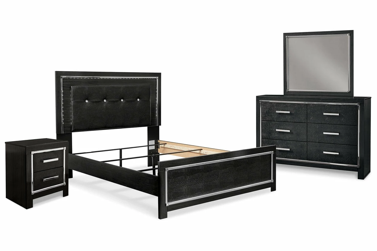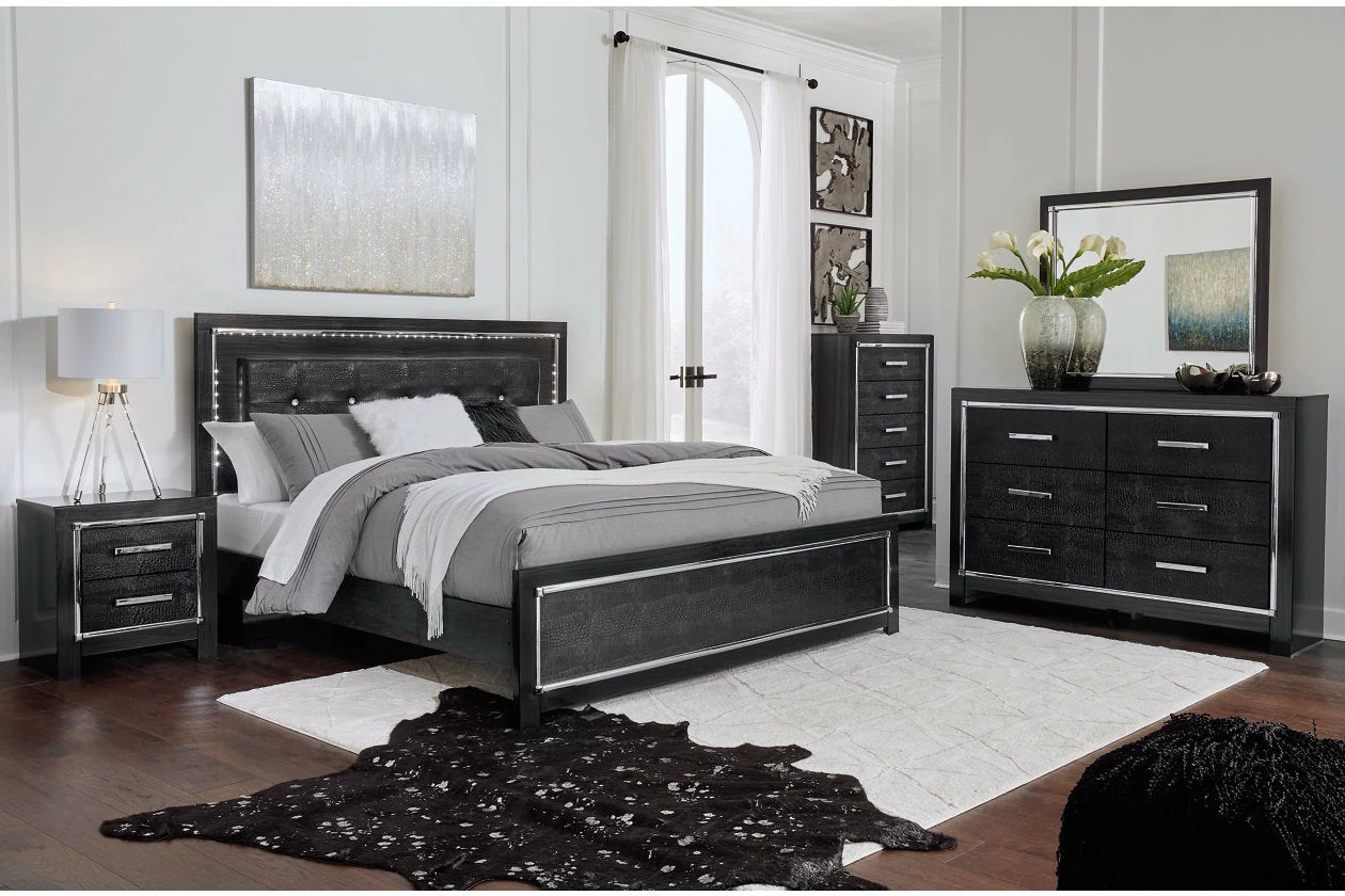 Rest easy. The luxurious look you’ve been dreaming of is yours for the taking—at a price sure to put you at ease. This bedroom set brings a sense of old Hollywood with a contemporary flair. A deep, dark finish, faceted chrome-tone accents and LED lighting exude Hollywood-chic style to the max. Padded windowpane-stitching and faux alligator panels infuse a sumptuous look that’s upscale and indulgent, and utterly on trend. Sure to entice those with refined tastes, this set is a contemporary masterpiece.