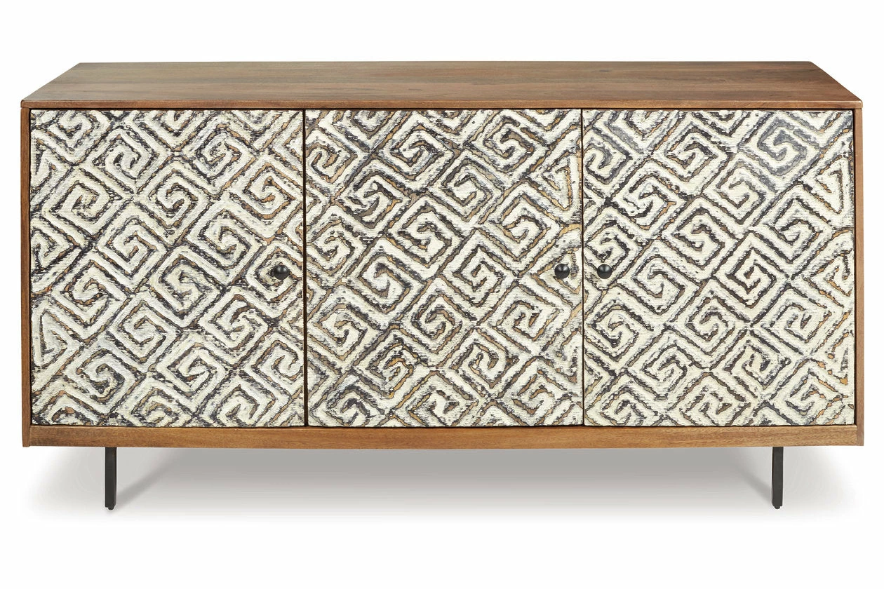 If you’re looking for a cool, clean-lined accent piece loaded with character, then you’ll surely want to carve out some space for this accent cabinet. Fabulous flush-mount doors wow with their carved Greek key design for added dimension and tonal contrast. Three interior shelves accommodate your storage needs.