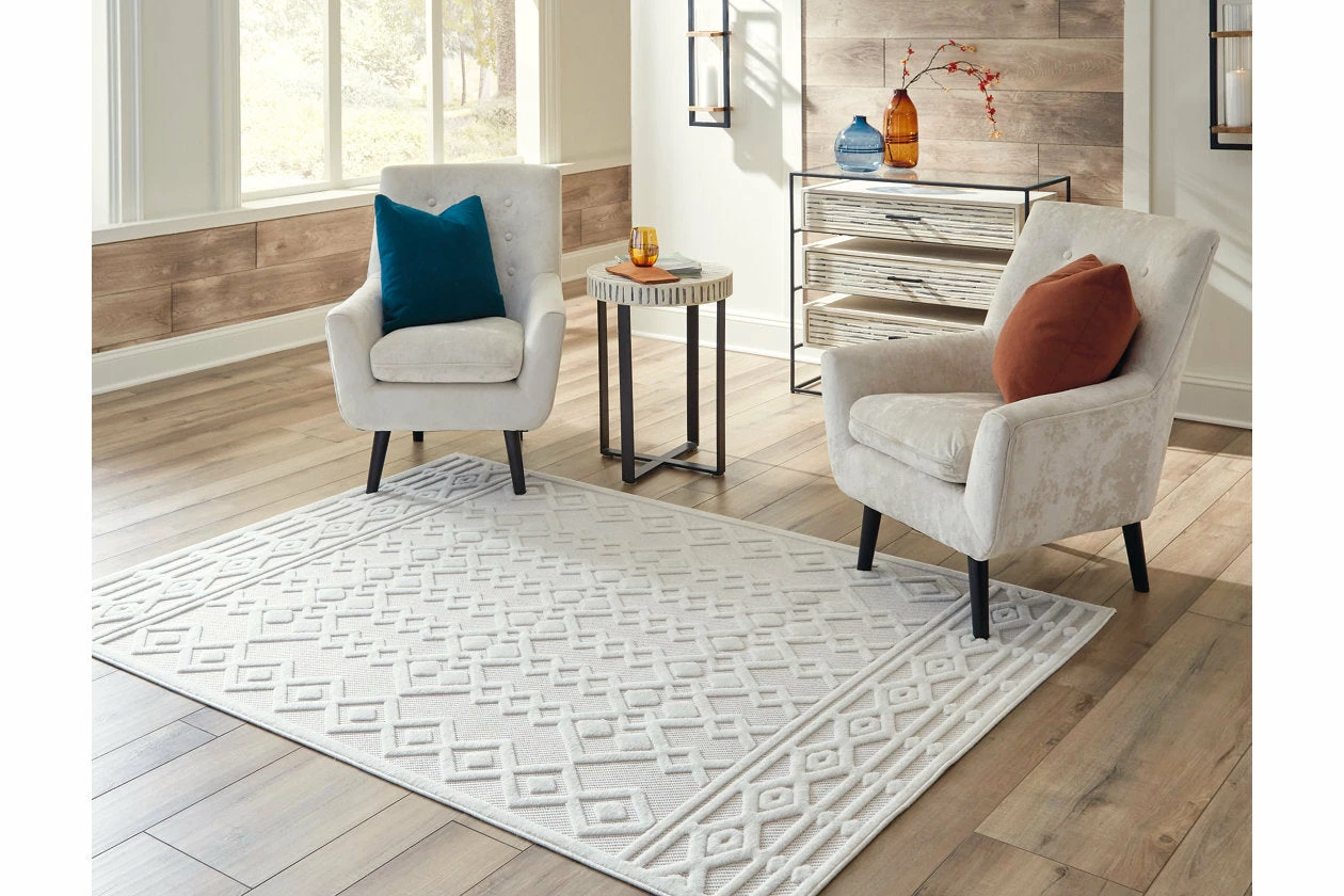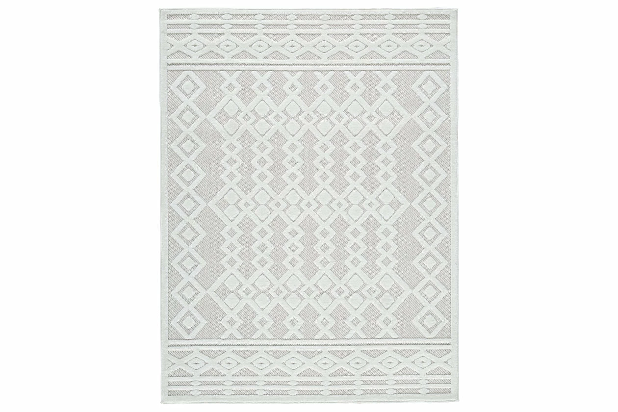 Ground your decor with the tribal design of this indoor-outdoor rug. Its cream hue is a contemporary dream, softening any space in subtly striking style.