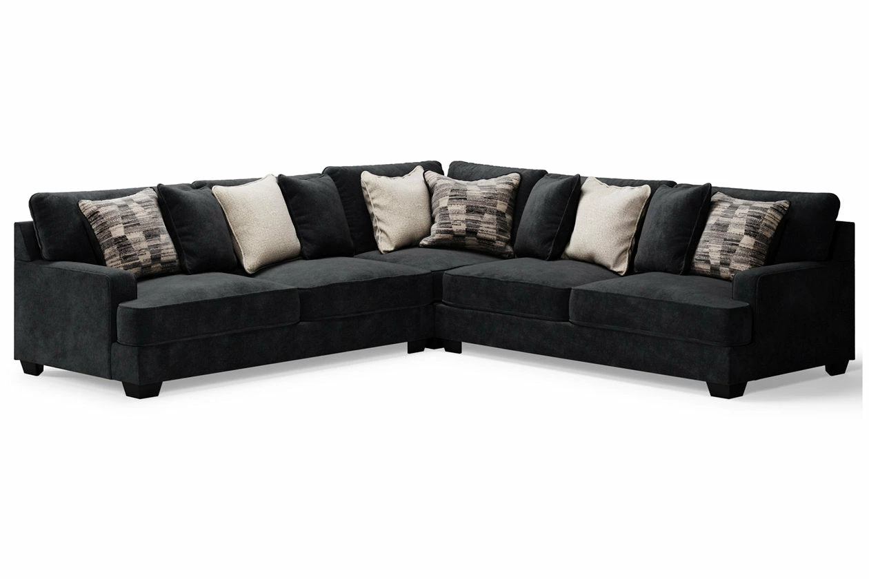 A match made in heaven, this sectional marries a cool, contemporary look and a decadently soft, plush microfiber feel. This irresistibly comfortable union is love at first touch at the end of a long day, or anytime you’re ready to get serious about relaxing. Say I do to big-time comfort and style flanked by neatly finessed track arms in a clean, straightforward design. A medley of pillows in cream, black and gray blends effortlessly with any setting.