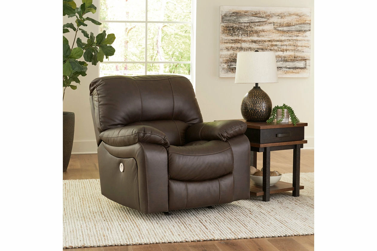 Focus on function. This practical power rocker recliner balances contemporary character and irresistible comfort. Its affordable, expertly matched leather and faux leather upholstery keeps your style up to speed without breaking the bank. Reclining with the touch of a button, this piece plays well in relaxed, luxe seating areas made for quality time.