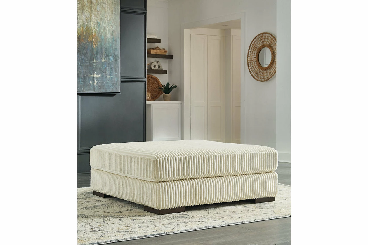 Plush and posh. Showcase your eye for on-trend texture with the statement-making cord upholstery of this oversized accent ottoman. Its stunningly soft fabric entices in a warm neutral hue, complementing contemporary color palettes. Let your feet sink into the spacious cushion and plan to stay a while—this cozy living room ottoman highlights your high-end approach to comfort and style.