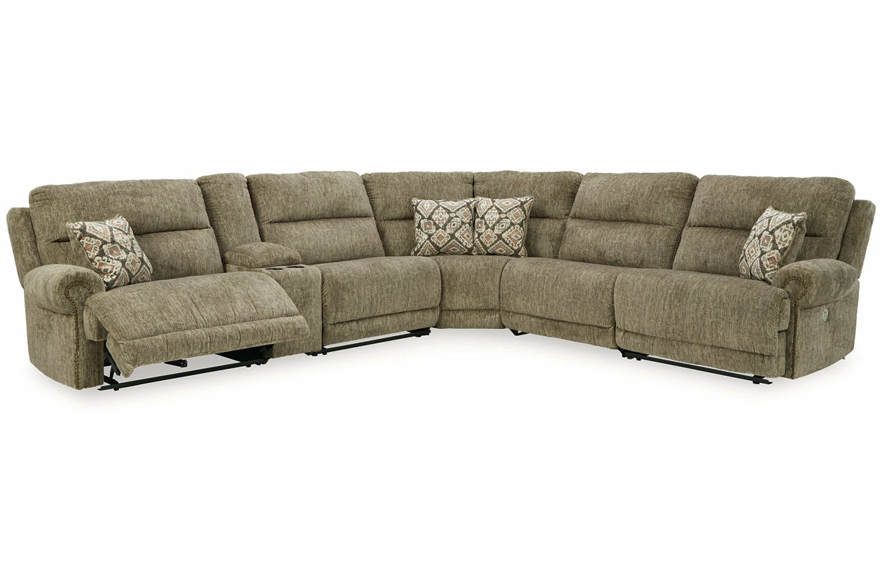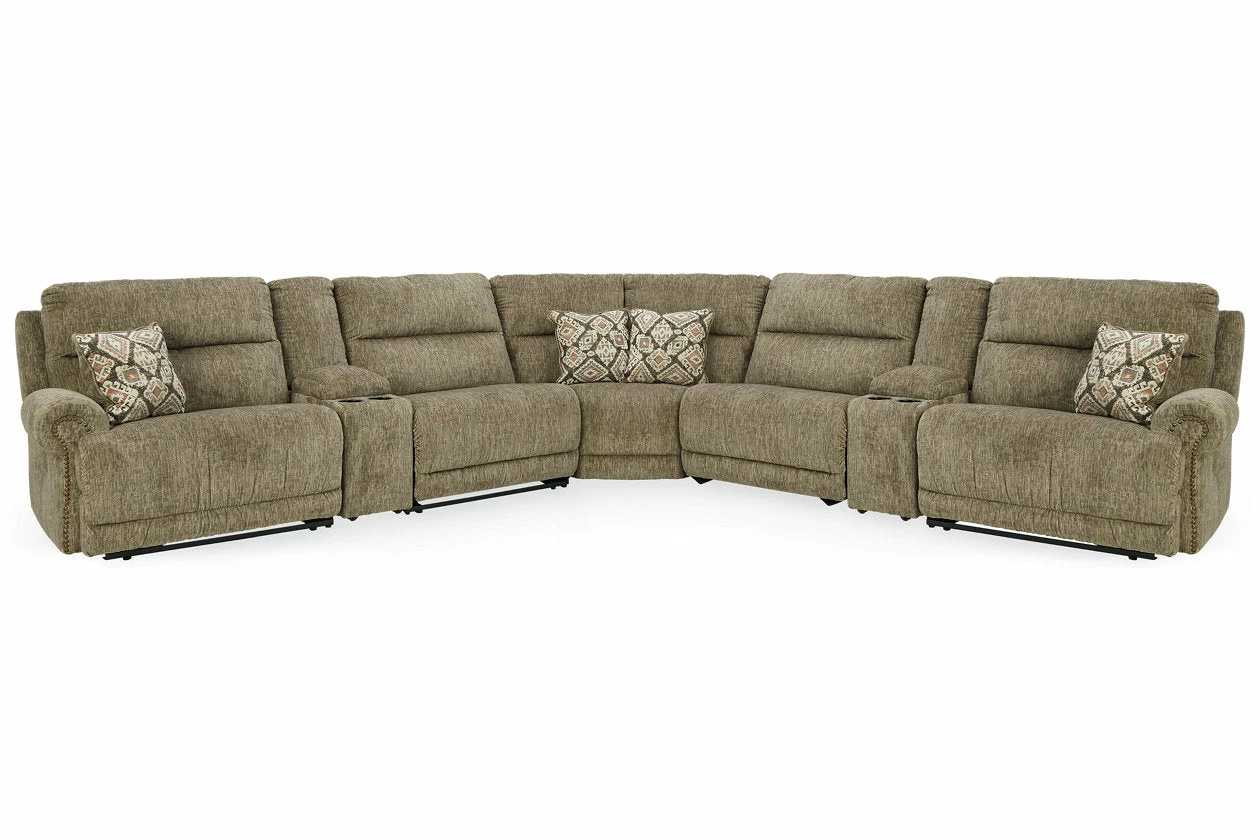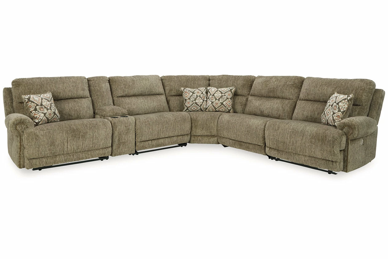| 6-Piece Power Reclining Sectional | 118.5″ | 131.5″ | 43″ |