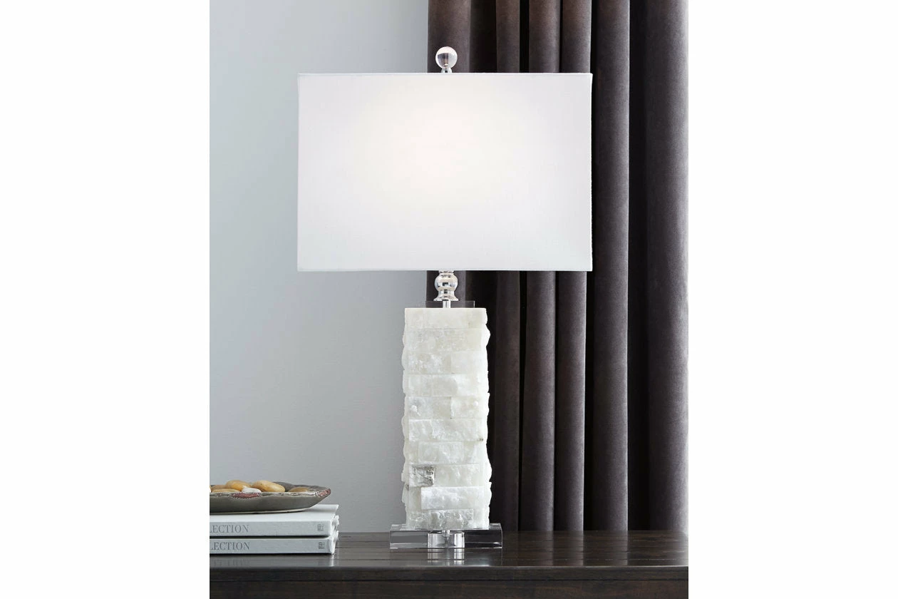 Bring a slice of paradise home with you. This lamp takes inspiration from the coastal chic trend with its uniquely crafted base, formed with chunks of white alabaster. How fashion-forward.
