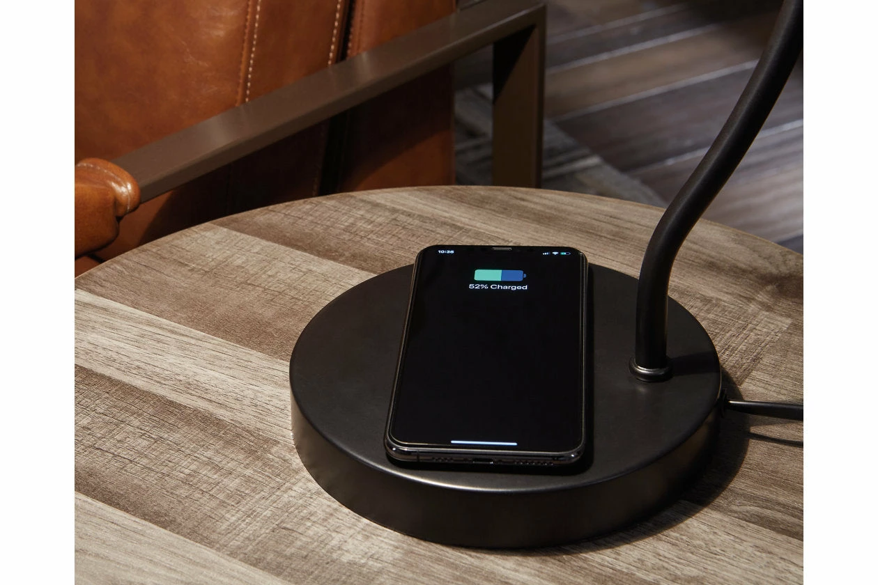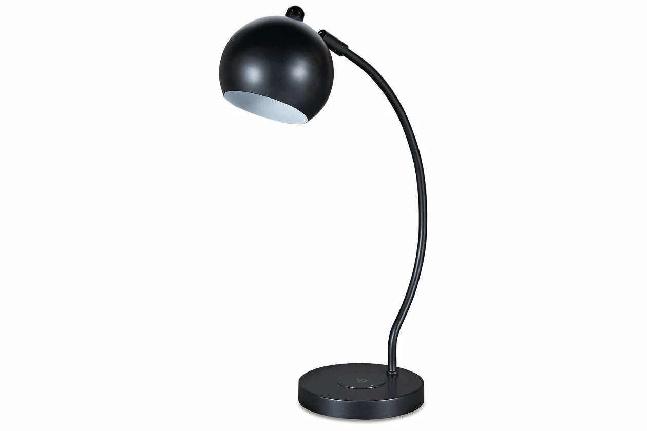 Don’t let lighting throw you for a loop. The beautiful curve of this lamp will add the right contour to your space. With a classic black finish, the arc of this lamp ends with an adjustable metal shade. The integrated wireless charging and USB port add a convenient way to keep your devices powered.