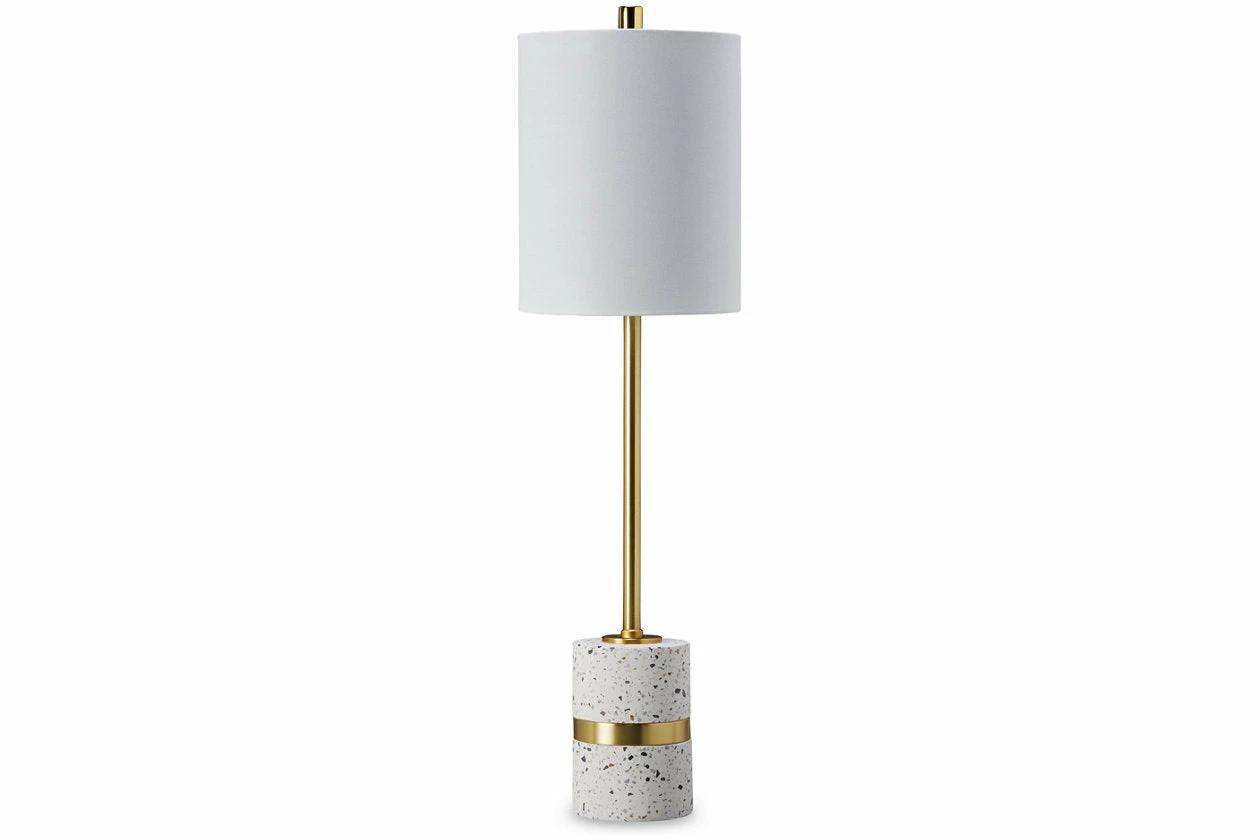 Inspired by trend-right stone sculptures, this table lamp offers a practical way to bring contemporary style to your home. Playful speckles in natural tones add an intriguing element to any desk, nightstand or end table.