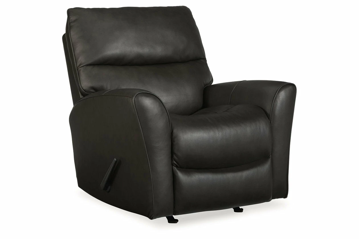 Smartly crafted with combination leather and faux leather upholstery, this rocker recliner personifies accessible luxury. Its handsome deep neutral hue appeals to your contemporary sensibilities. Subtly sloping arms frame the otherwise clean-lined structure with simple flair.