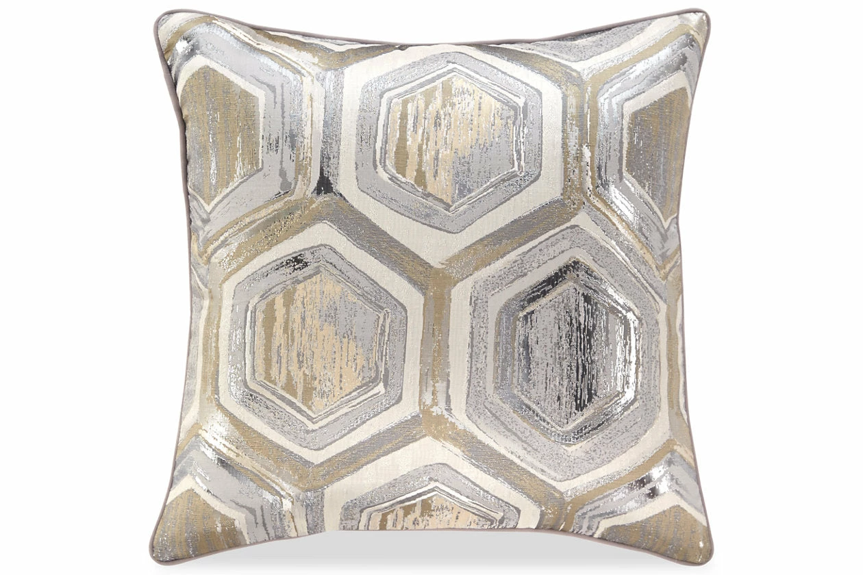 Bring an effortlessly cool and contemporary feeling to a space with this toss pillow. A hint of metallic sheen takes its neutral palette to a new level, while the hexagon pattern is perfectly on point.