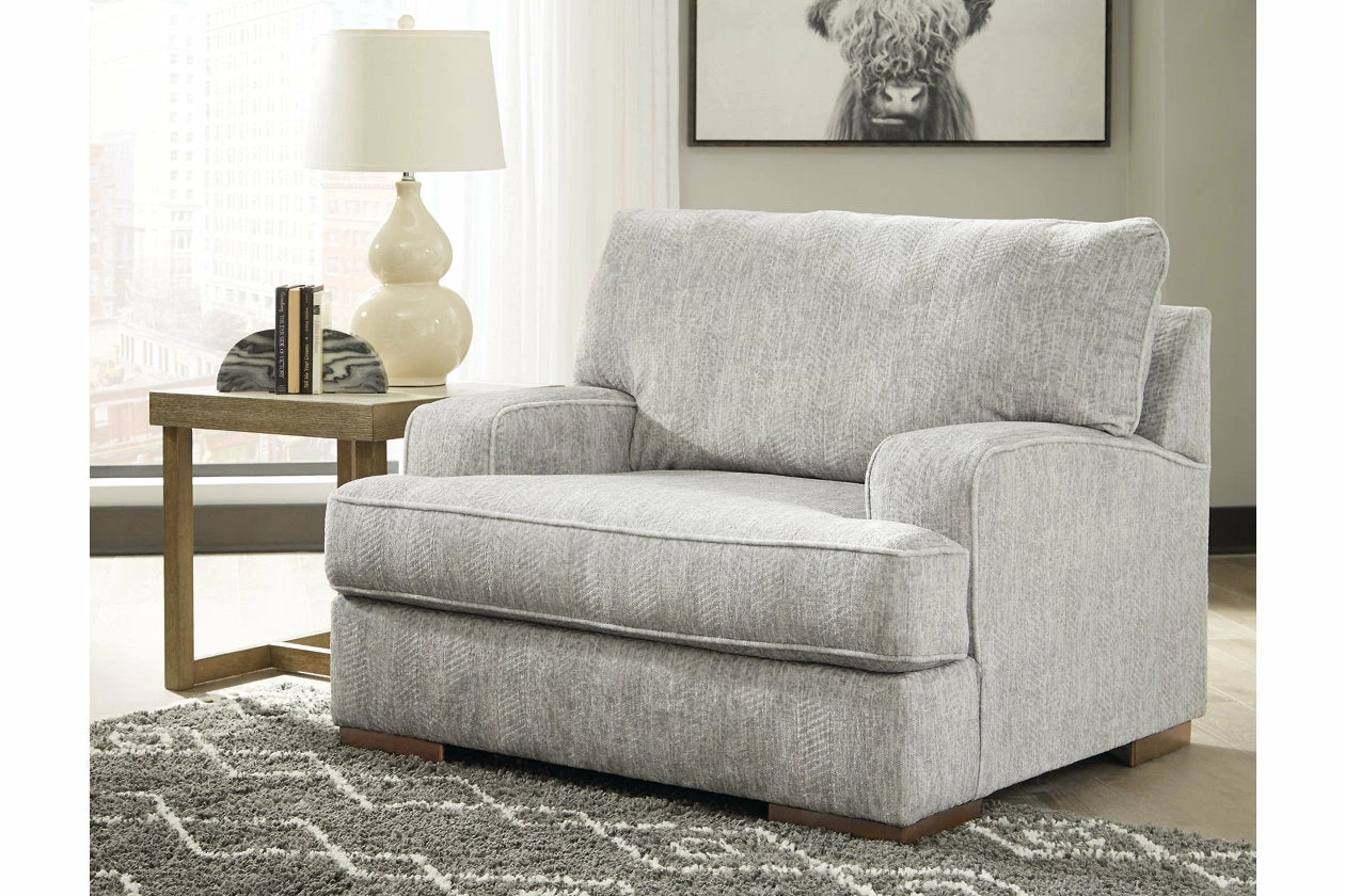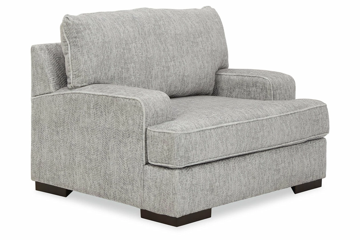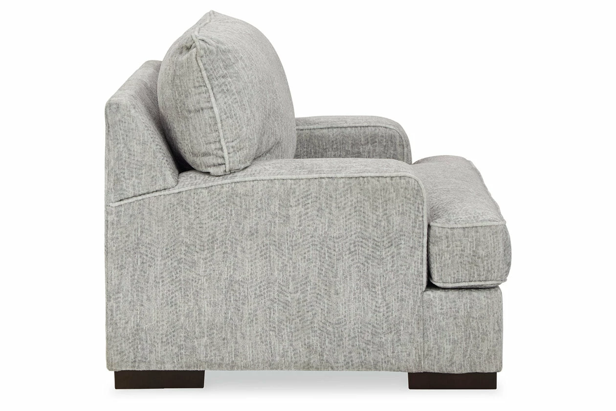 An indulgent choice with a deep seat crafted for ultra-plush softness, this chair is the ideal merger of modern flair and classic staying power. If you love a touch of texture along with a richly relaxed aesthetic, you’re sure to appreciate the chair’s gorgeous gray upholstery with a subtle chevron effect.