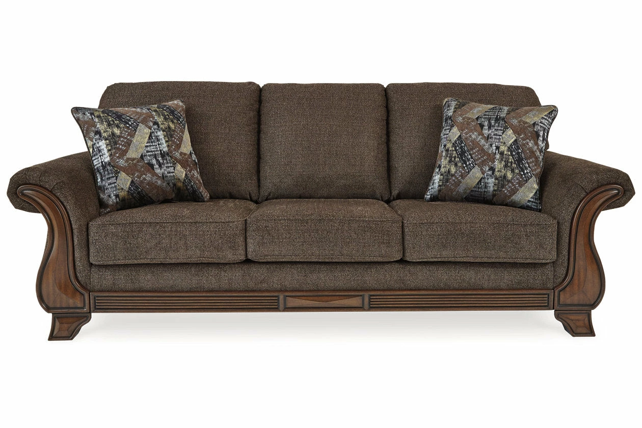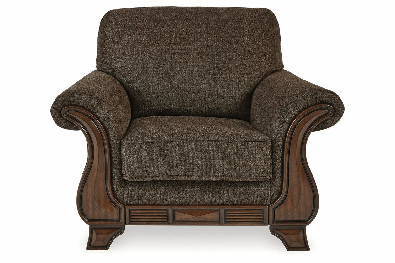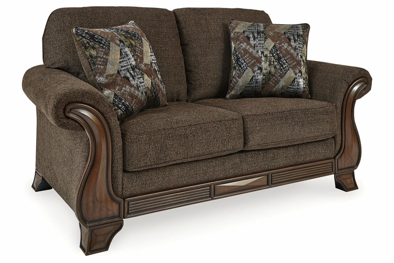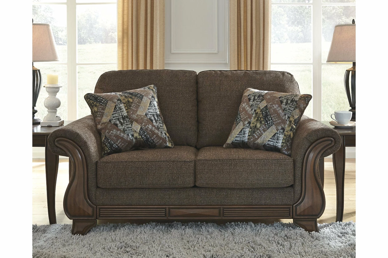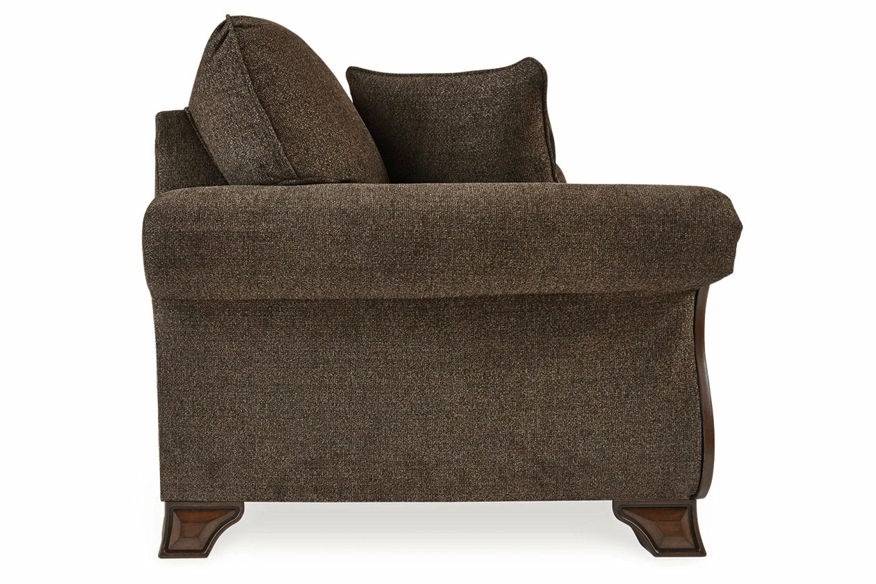 A curvaceous beauty, this loveseat will make you happy you’re a traditionalist. Fancifully turned feet, rail and arm panels mimic the painstaking details of years past. Loaded with modern comfort, the thick cushions are covered in a decadently plush teak brown upholstery sure to complement so many color schemes and stand the test of time.