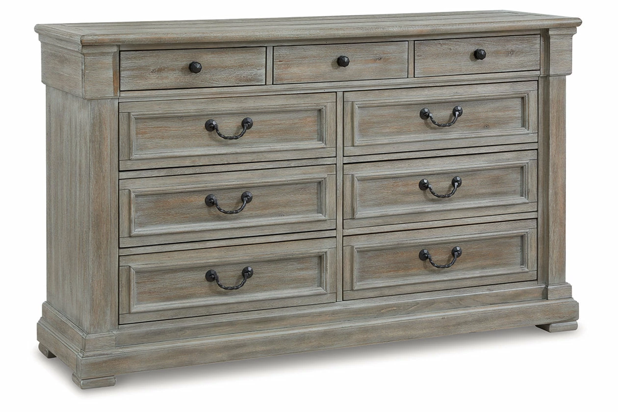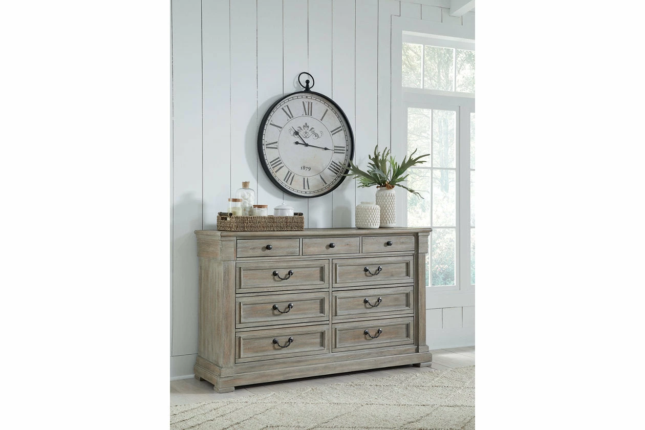 Put a simple twist on your approachable sense of style with this classically charming dresser. A glazed bisque finish covers the wire-brushed textural surface, with natural wood undertones bringing additional dimension. Blackened iron-tone hardware embellishes the drawer fronts, infusing this chic piece with an air of traditional elegance.