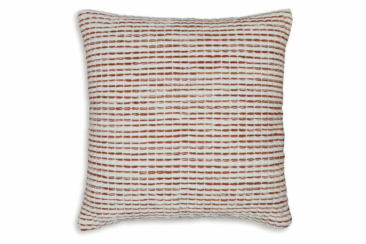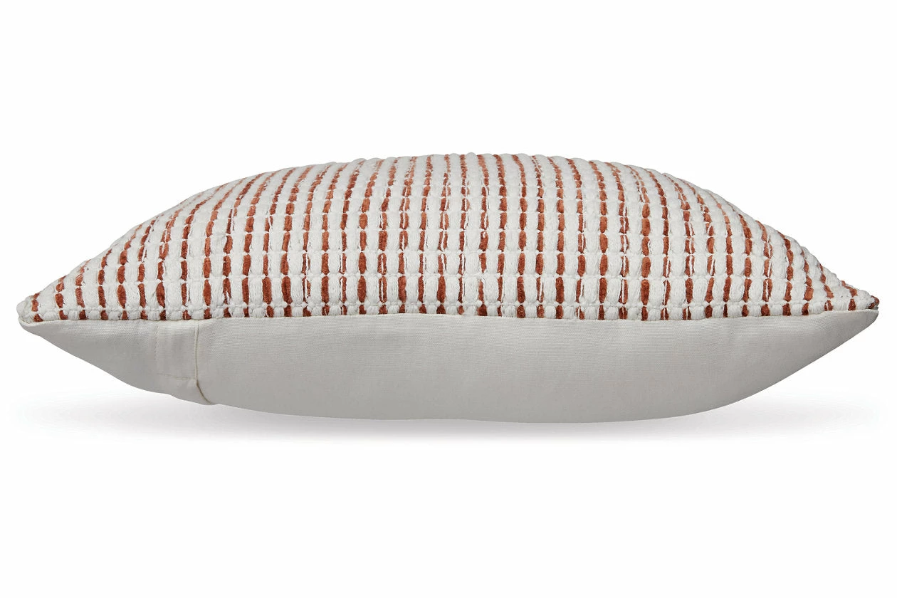 This throw pillow’s woven stripe design lends a cozy, laid-back look. Its rust and white hues mingle well with neutrals and earth tones, adding an inviting air to your decor. Toss it on a bed or your go-to chair for a relaxed feel.