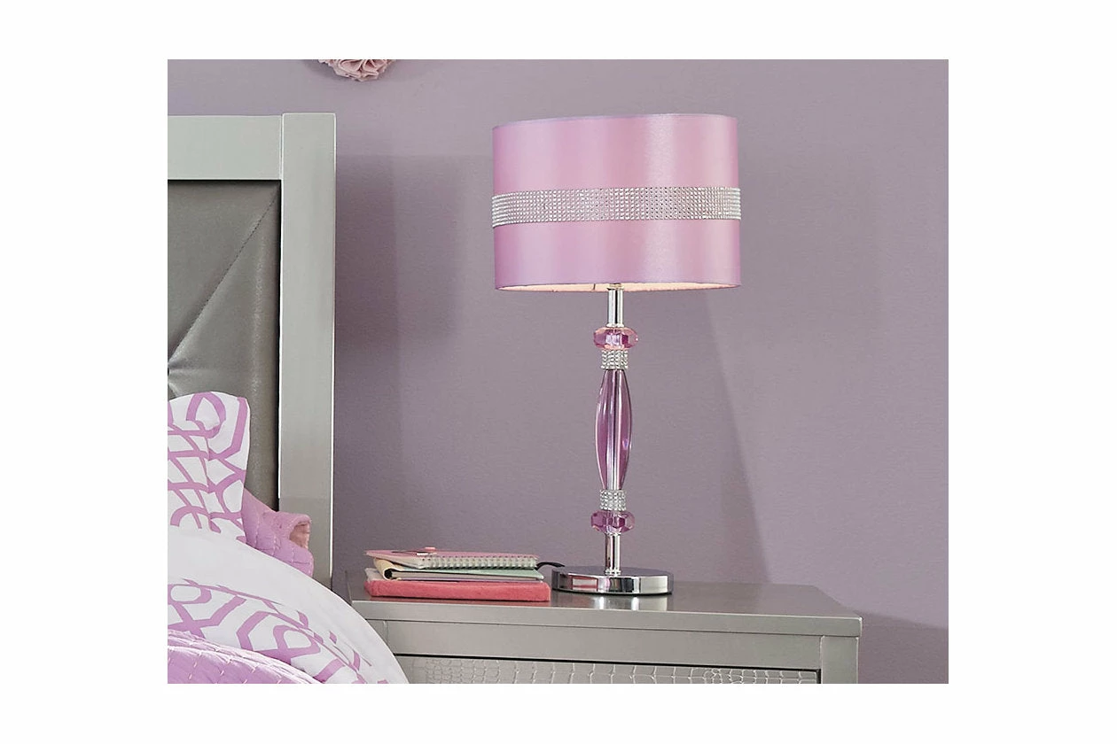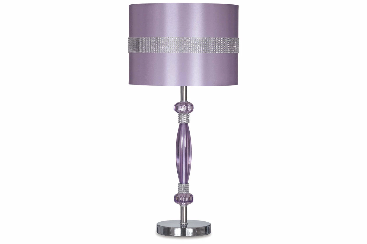 A plum-pretty hue, gleaming silver and rhinestone accents—perfect for the glitzy girly girl. This table lamp makes a light, bright addition to her nightstand or desk.