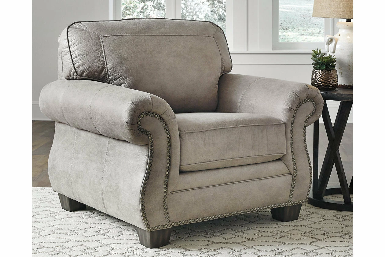 Seamlessly merging classic elements with modern trends, this recliner invites you to bring home the best of then and now. Wrapped in a fabulous steel gray upholstery with sumptuous suede-like feel, this easy-elegant reclining chair is dressed to impress with updated roll arm styling and tailored touches including nailhead trim and window pane stitching.
