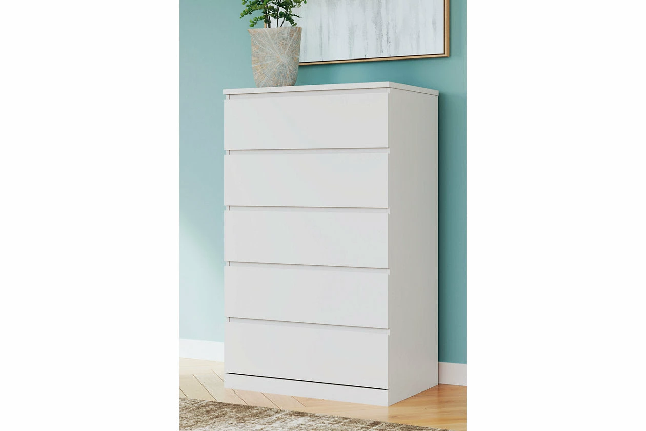 Create the modern bedroom of your dreams. This chest of drawers offers a minimal design with maximum style, combining ultra-clean lines and an easy-elegant solid white finish with a hardware-less aesthetic. Spacious drawers with ball-bearing glides make putting things away a snap.