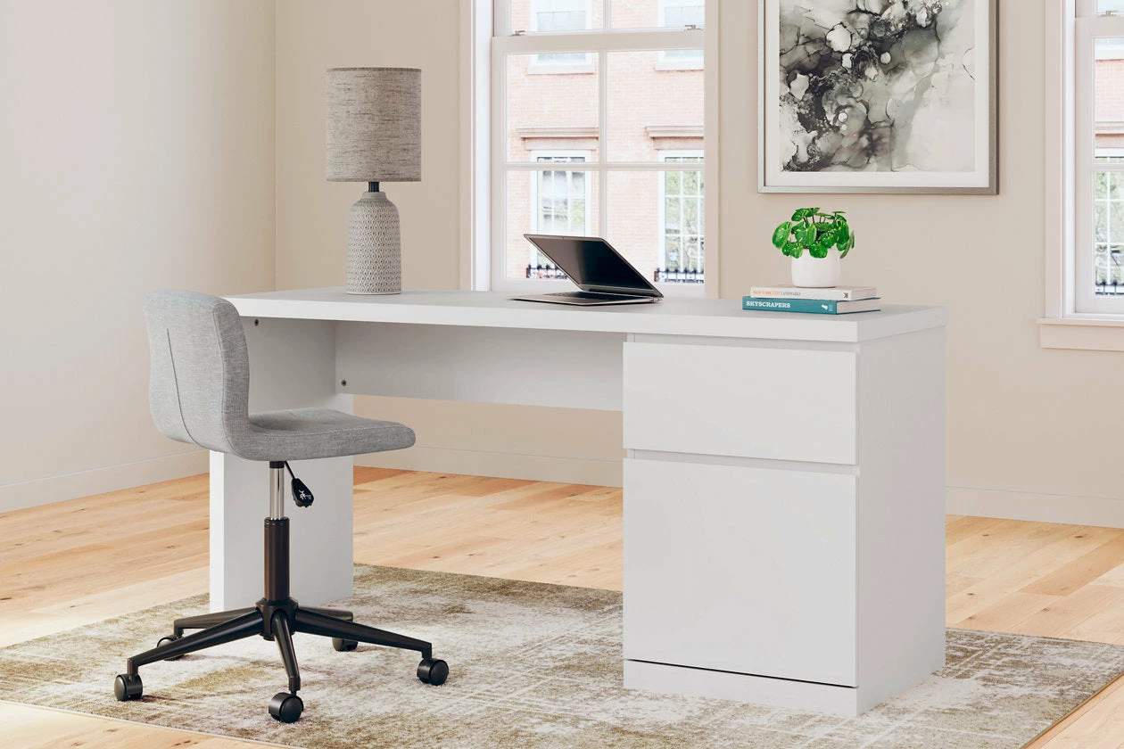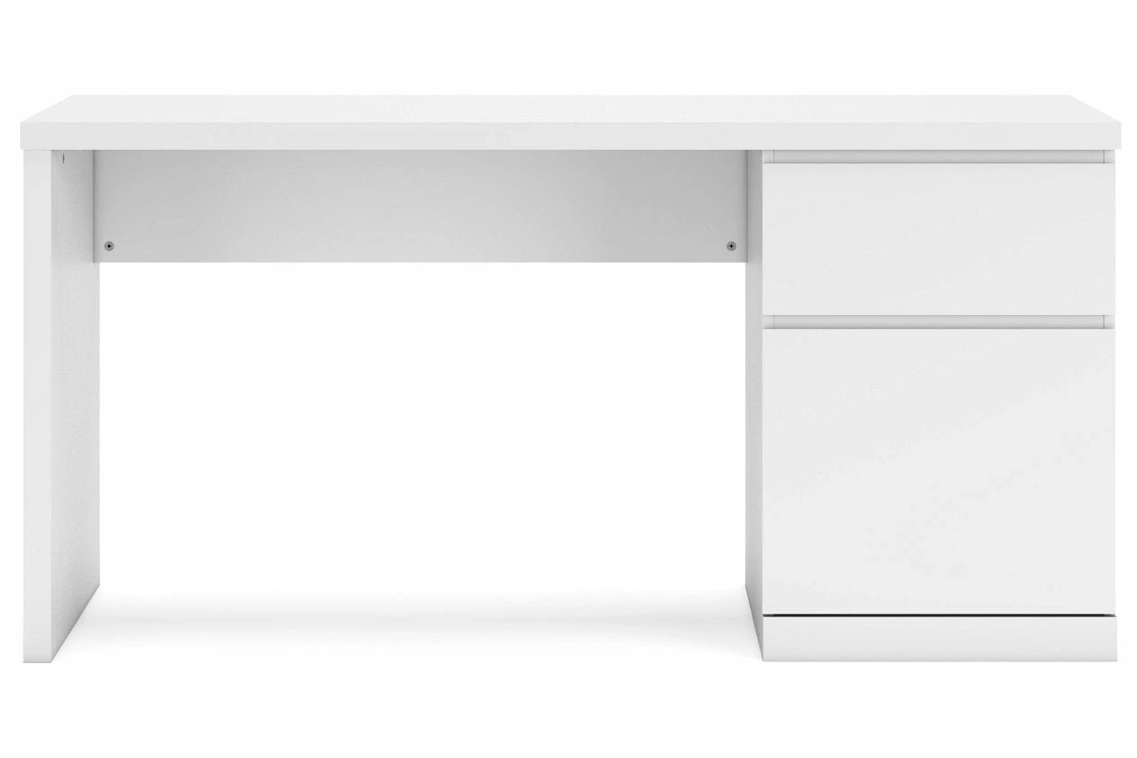 Create the modern workspace of your dreams. This sturdy home office desk offers a minimal design with maximum style, combining ultra-clean lines and an easy-elegant solid white finish with a hardware-less aesthetic. A spacious drawer with ball-bearing glides organizes the business at hand.