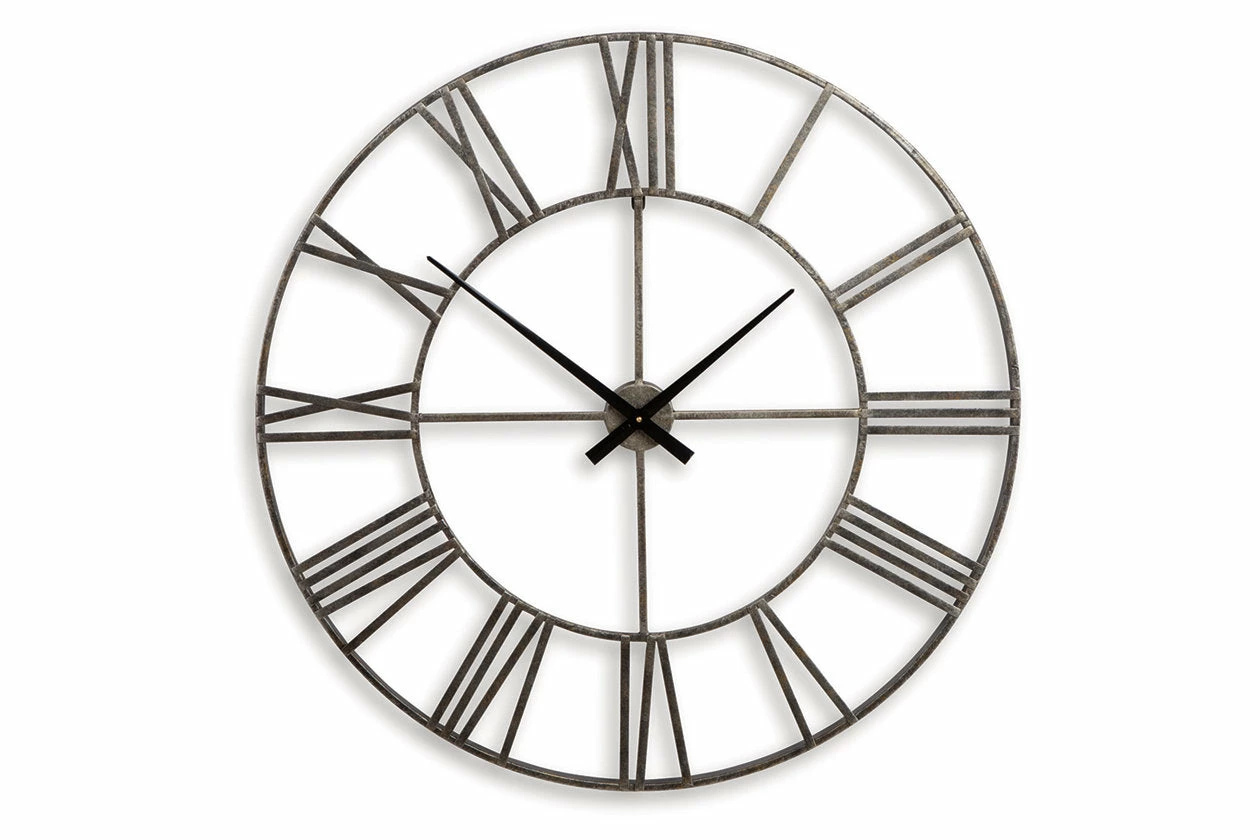 Casual style meets practical function with this wall clock. Roman numerals are easy to read on the sleek metal frame in an antiqued silver finish. Keeping track of time has never been so stylish.