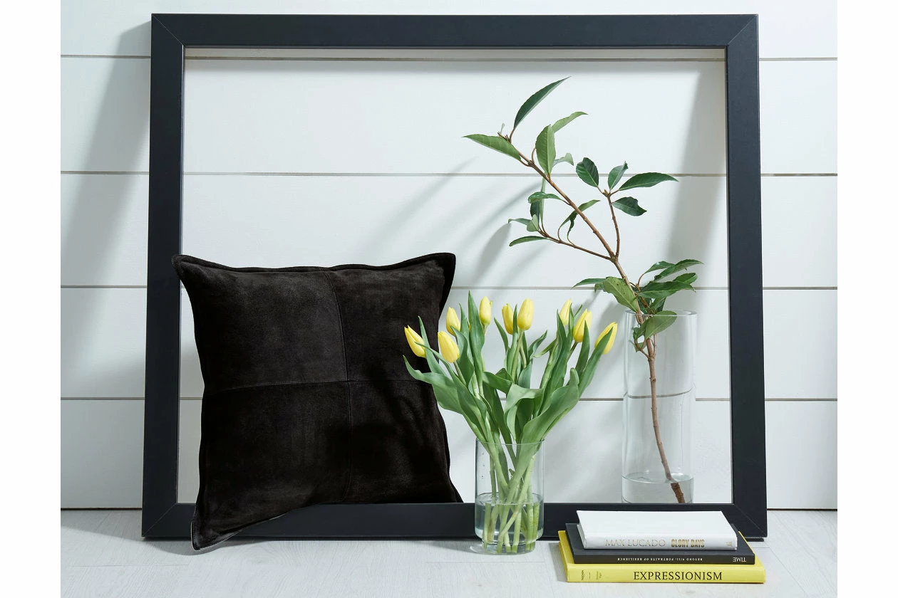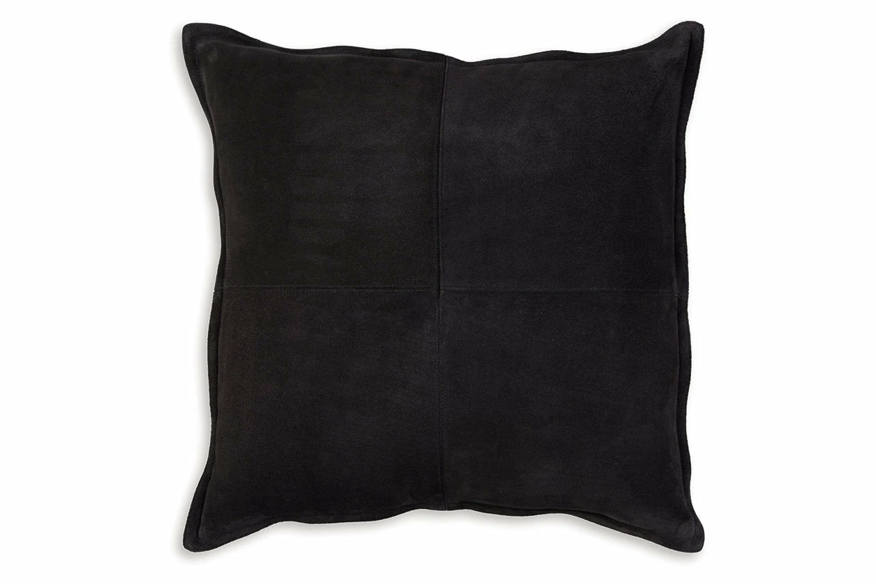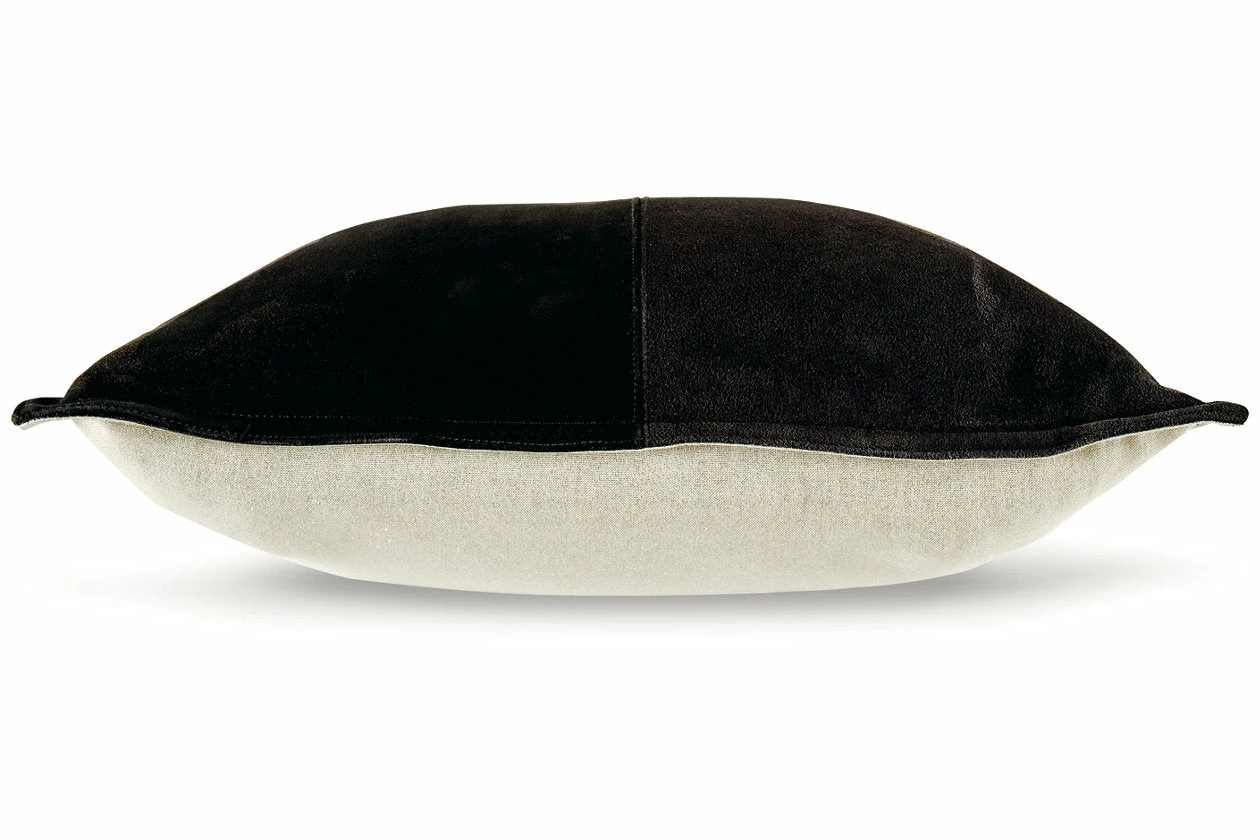 Add casually cool comfort to your couch with this pillow. Its sumptuous suede in a black patchwork pattern with flange is the essence of chic, cozy style.