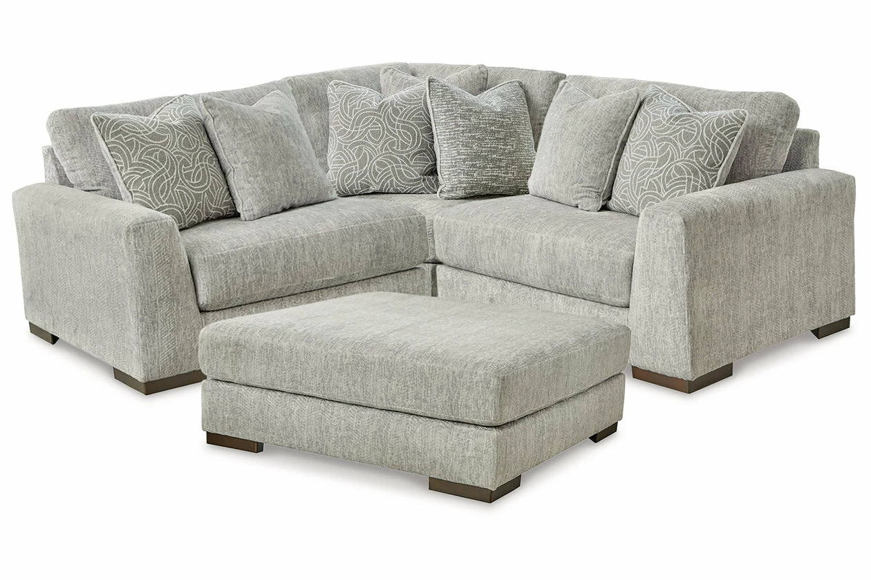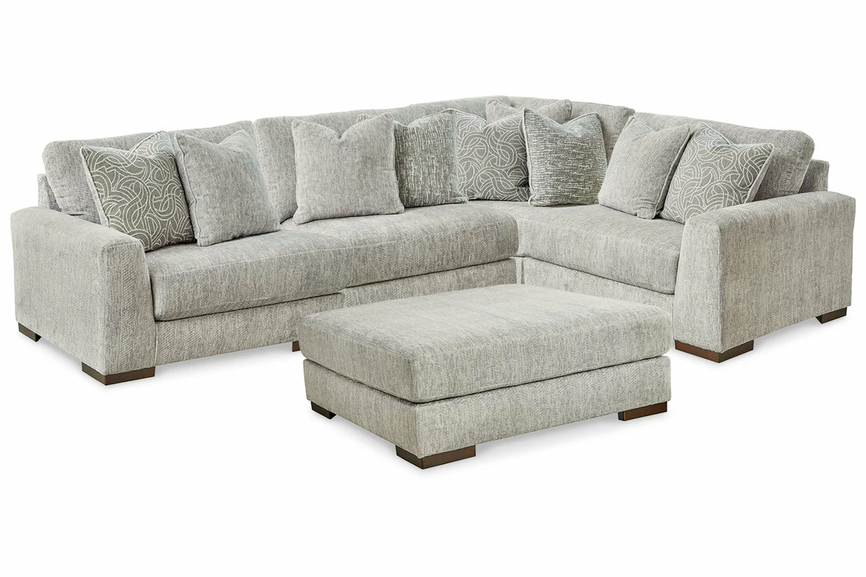Sit back and enjoy the velvety softness of this sectional and ottoman package. Its contemporary design is accentuated by a subtle chevron pattern that masters the art of smart and sophisticated style.