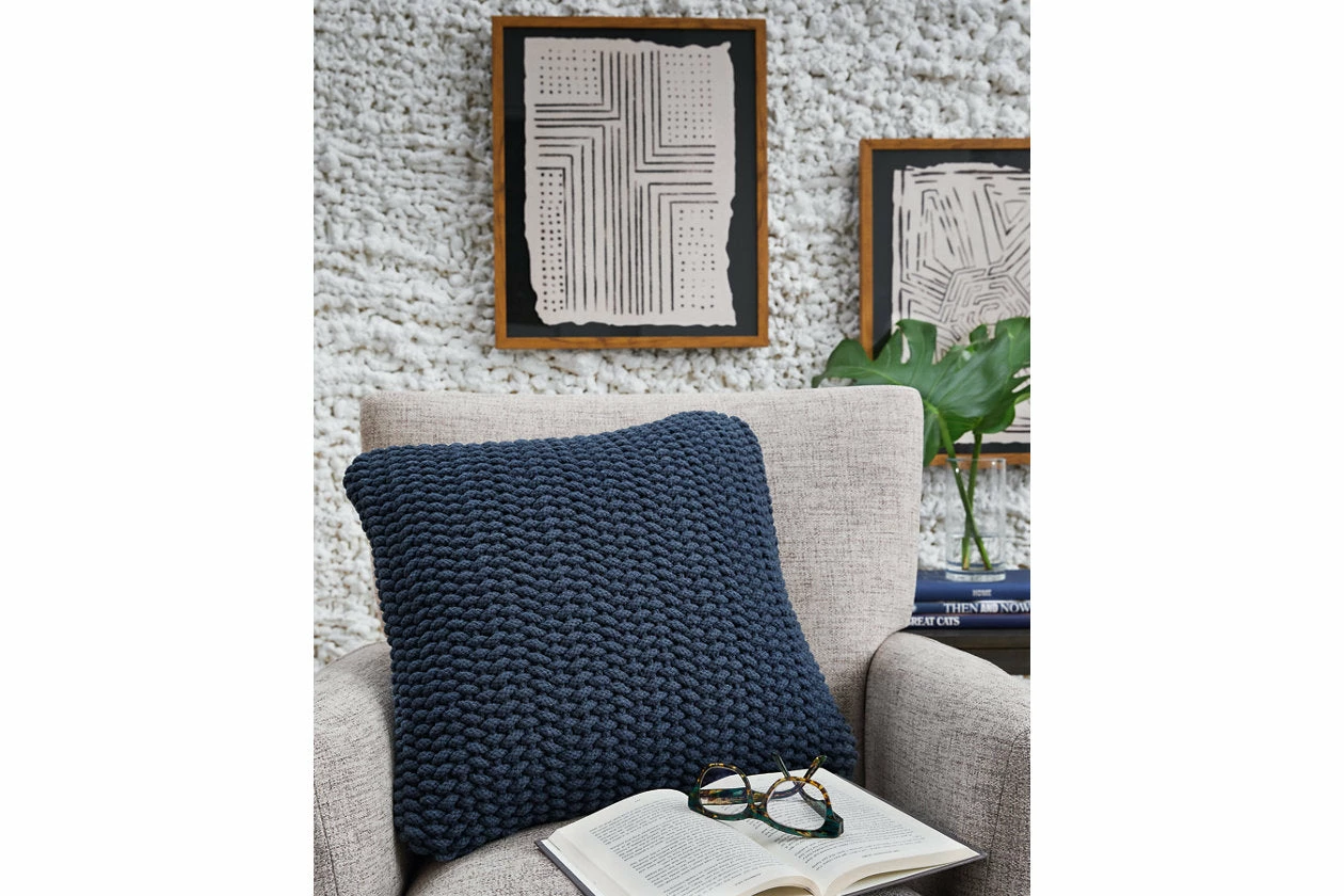Simply chic, this pillow welcomes cozy style to your sofa, sectional or bed. Its deep blue hue and inviting handwoven design complete casual and coastal retreats alike, adding a stylish touch to your reading nook or lounge area.