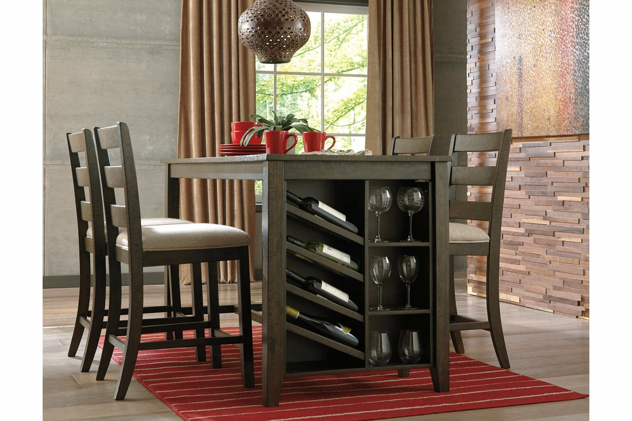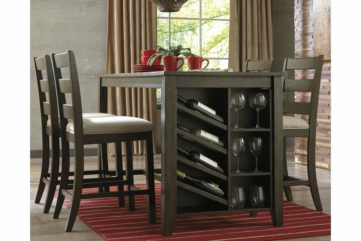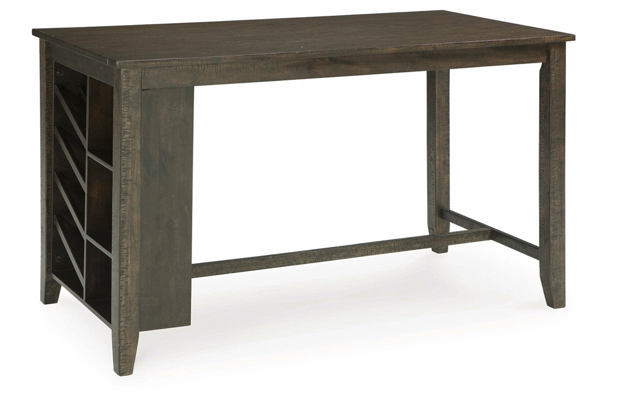 “Rough sawn” texture and a warm brown finish is where the style begins and your dining area or game room is where this table belongs. Relaxed elegance is easy with a built-in wine rack and open shelving. Find functionality and contemporary style at its best with this counter table.