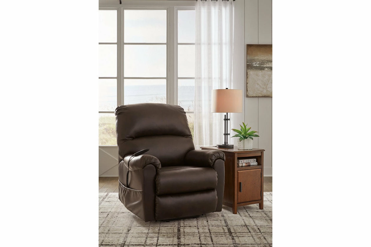 Whether it’s fashion or function that moves you, this power lift recliner goes that much further to impress you. With the touch of a button, ease back into the perfect custom recline position, enhanced with ample pillow support and a dreamy high-back design. Thanks to the recliner’s smooth and gentle lift-and-tilt function, you’ll be up and at ’em in no time.