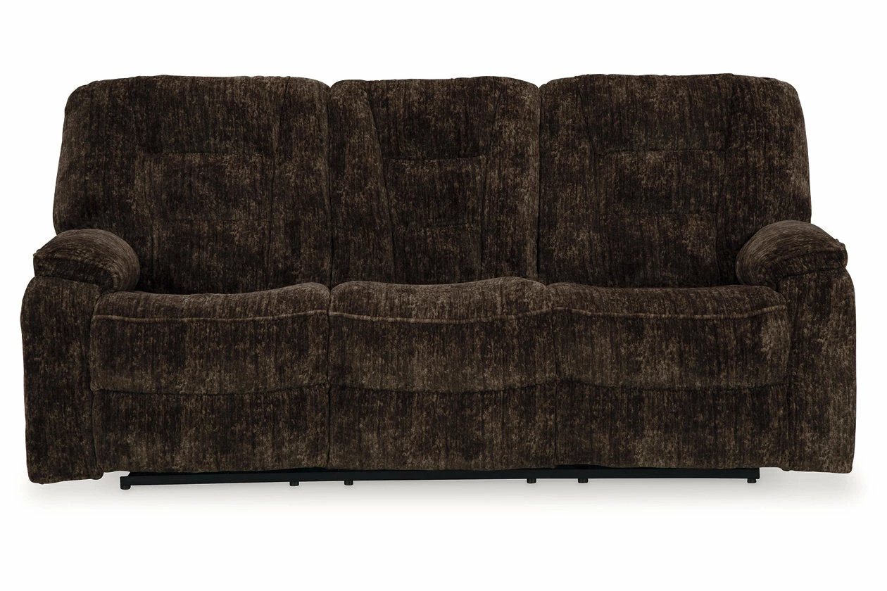 Lush and plush upholstery. Sink-in softness. Generous armrests. This contemporary reclining sofa brings a feel-good experience home in every way, shape and form. Beyond the ample snuggle space and pillowy softness, the added perk of a concealed drop-down table takes it over the top. Indulge, relax and settle in for comfort.