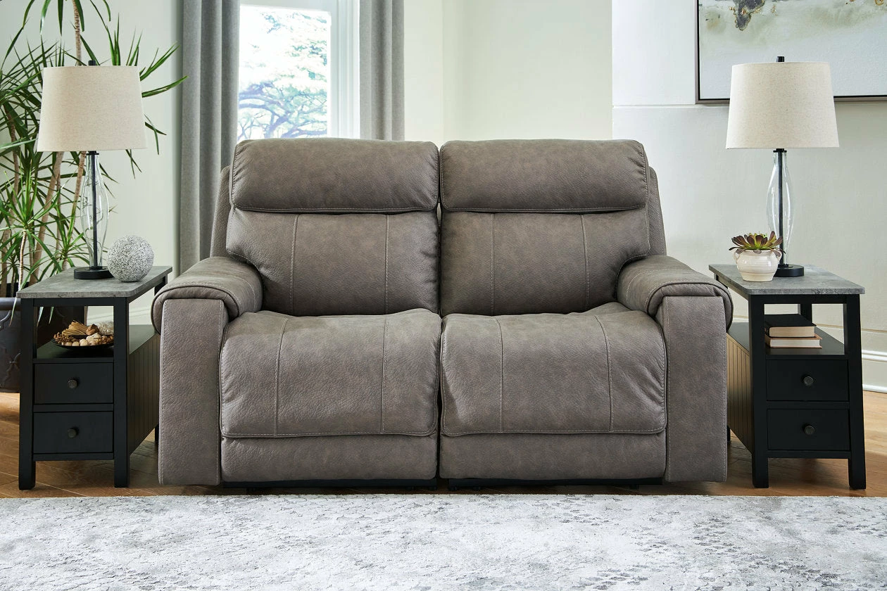 Destination: chic comfort. This power reclining loveseat launches your living room into superior form with stellar attention to detail. Exemplifying attainable luxury, its handsome hue has an air of sophistication you’ll long to lounge in. And when you’re done basking in the glow of its sleek style, recline with indulgent motion features to welcome head-to-toe relaxation.