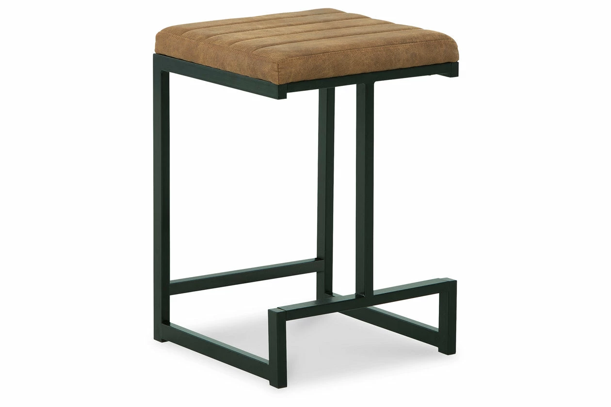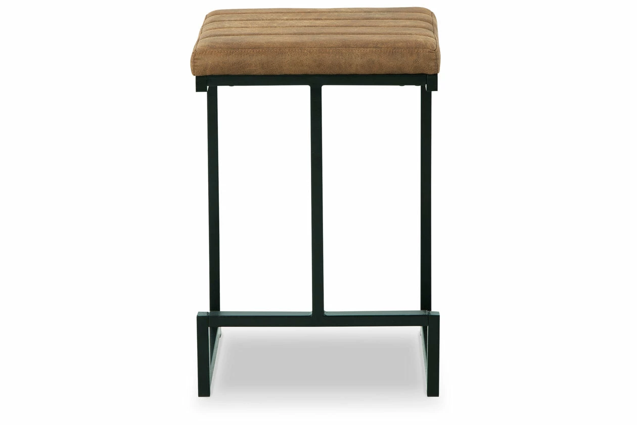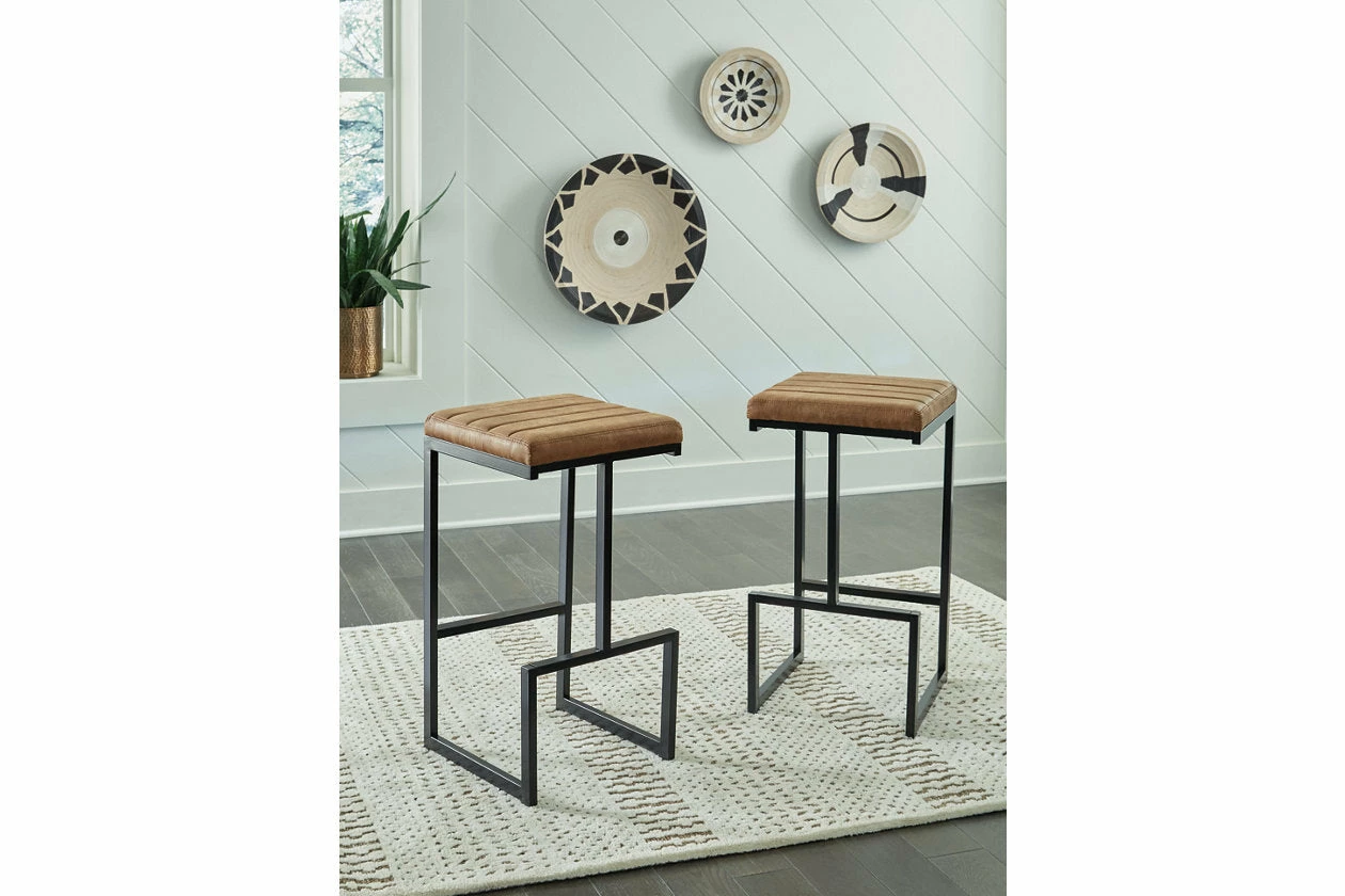 Have a seat in sleek style with this bar stool. Contemporary with a casual vibe, it’s dressed to impress with a modern base, caramel-colored faux leather upholstery and a tailored channel seat design. An integrated footrest is a comfortable addition to the chic piece.