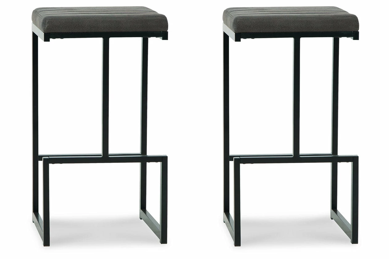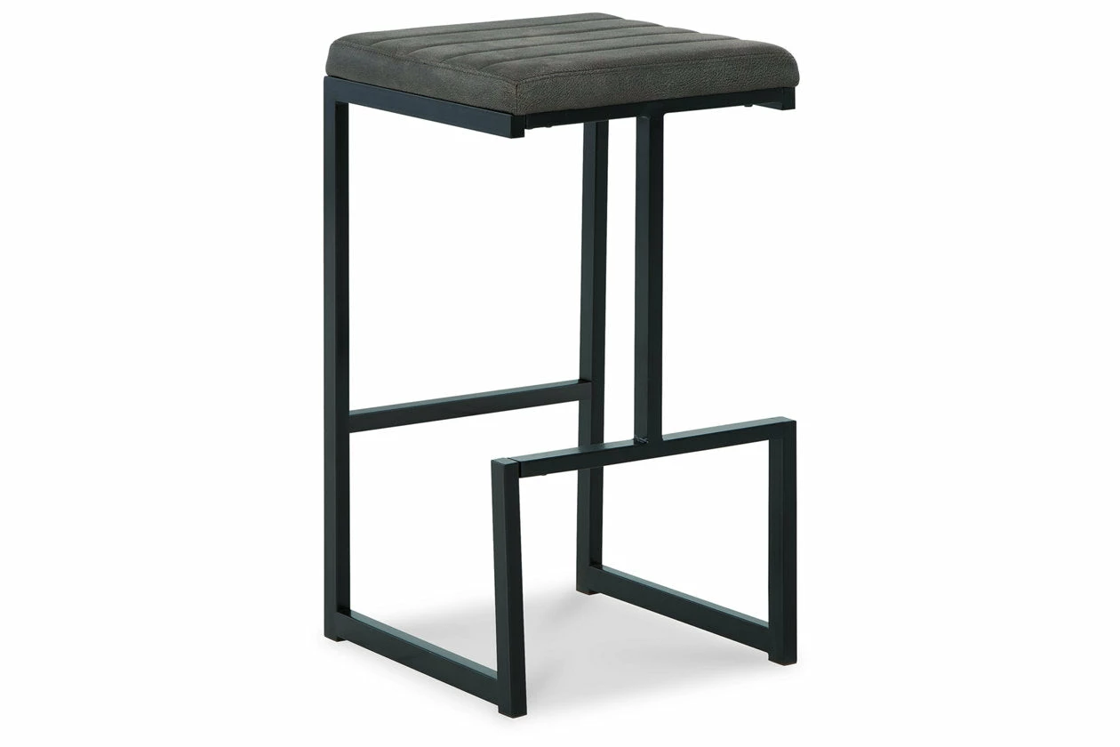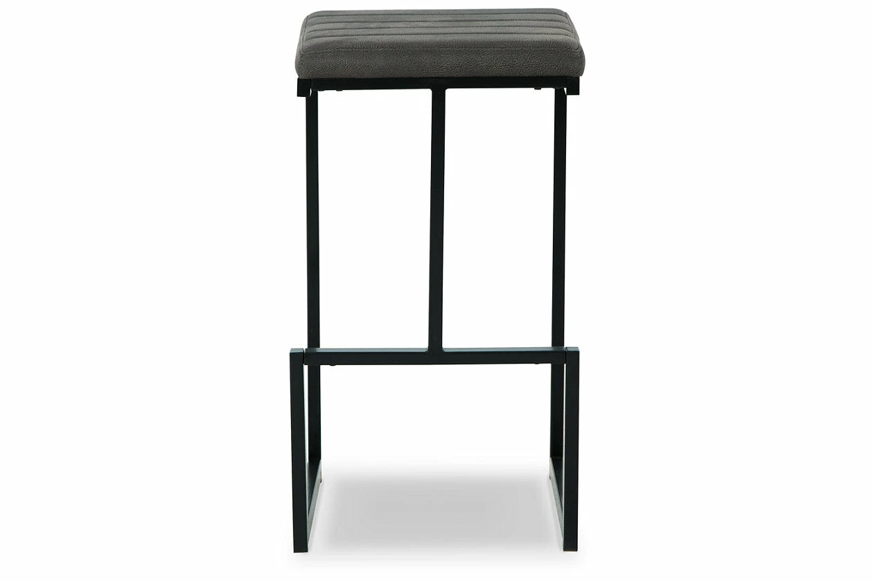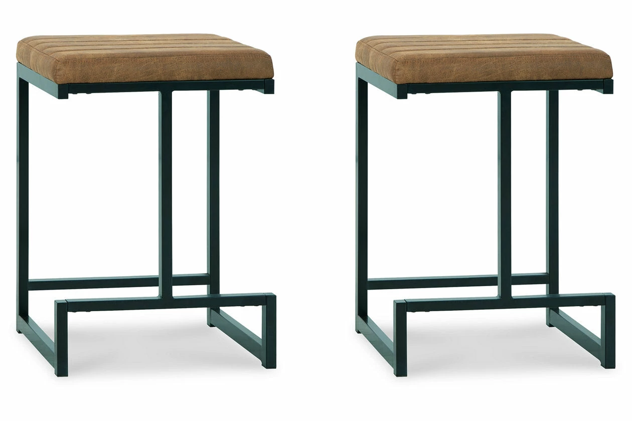 Have a seat in sleek style with this bar stool. Contemporary with a casual vibe, it’s dressed to impress with a modern base, caramel-colored faux leather upholstery and a tailored channel seat design. An integrated footrest is a comfortable addition to the chic piece.