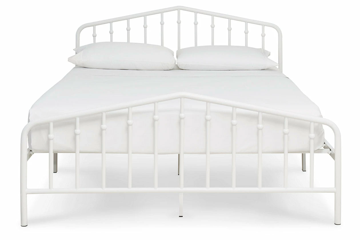 With a practical sense of beauty, this twin bed brings a subtle decorative element to your room with its white finish. Stylish spindles mounted on a gently arching top rail add visual interest without being too flashy. Bed setup is simple, with no additional foundation required.
