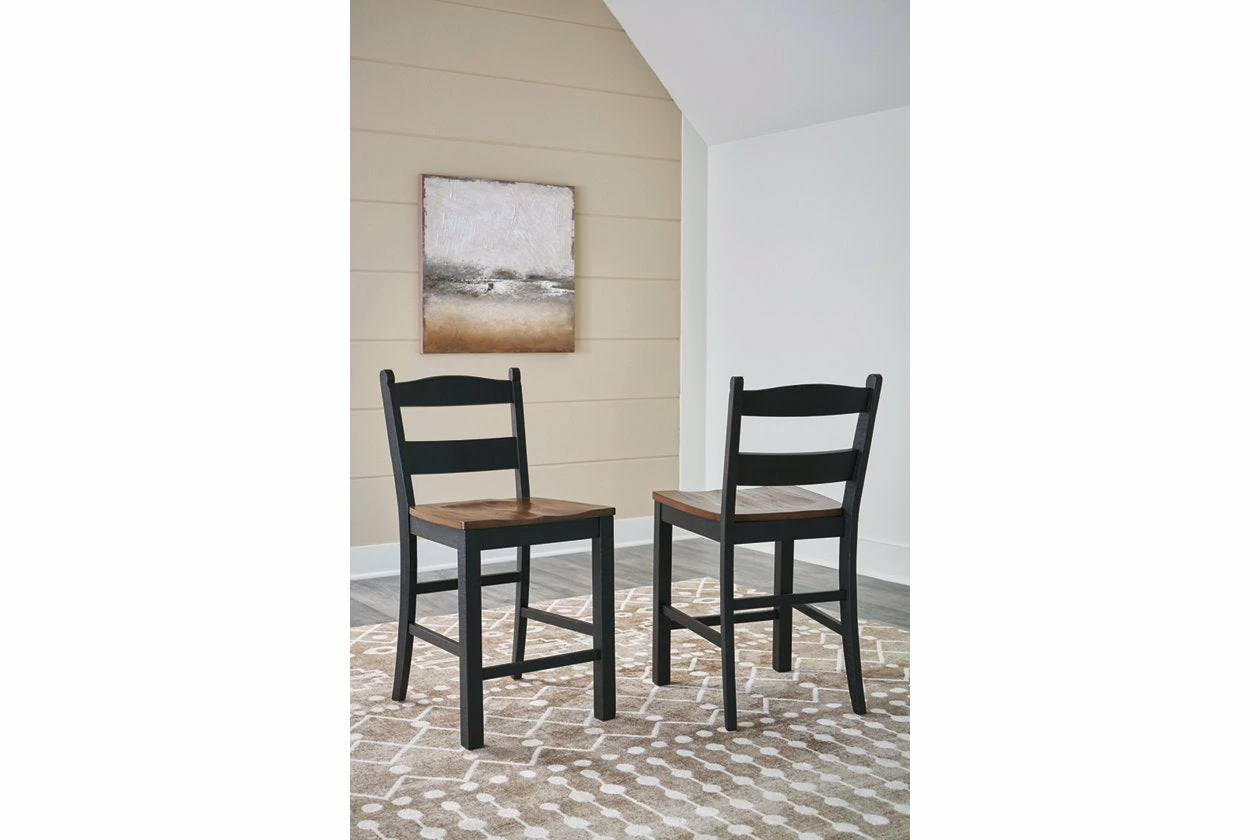 This counter height bar stool serves up the best in cottage styling. Its contoured seat keeps you comfortable while chatting over coffee and bantering over board games. A charming choice, the two-tone finish is versatile enough for many casual aesthetics.