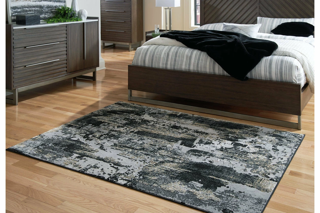 This rug merges black, gold, ivory and shades of gray in a high-low abstract design, creating a chic contemporary look. Infusing easy sophistication and a sleek modern flair, this rug gives a cozy and inviting feel to your space.