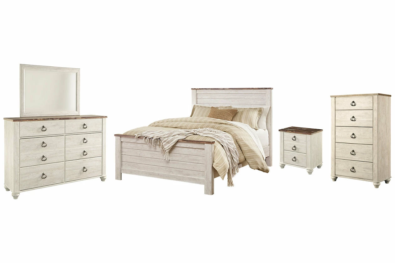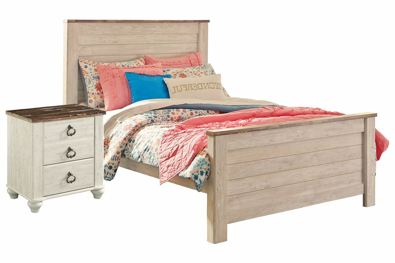 | Willowton Queen Panel Bed | 64.25″ | 87″ | 53.75″ |