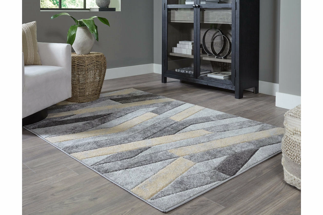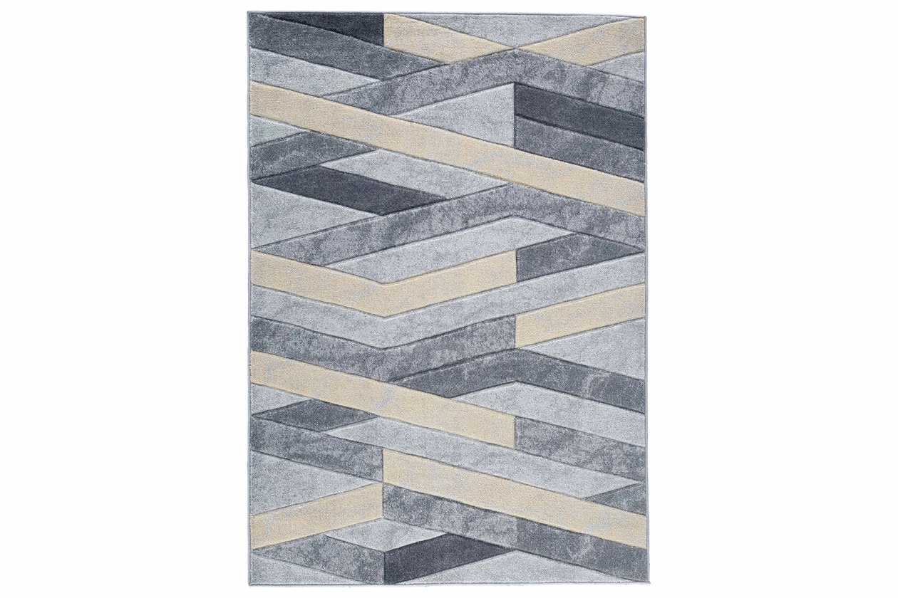 The modern design of this area rug is sure to make a bold statement in any room. By alternating the pattern flow from low to high, the weavers have created a work of art alive with texture. Shades of beige and gray are blended to produce an abstract-yet-tranquil feel underfoot.