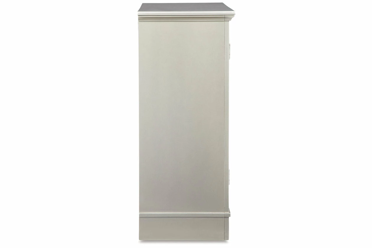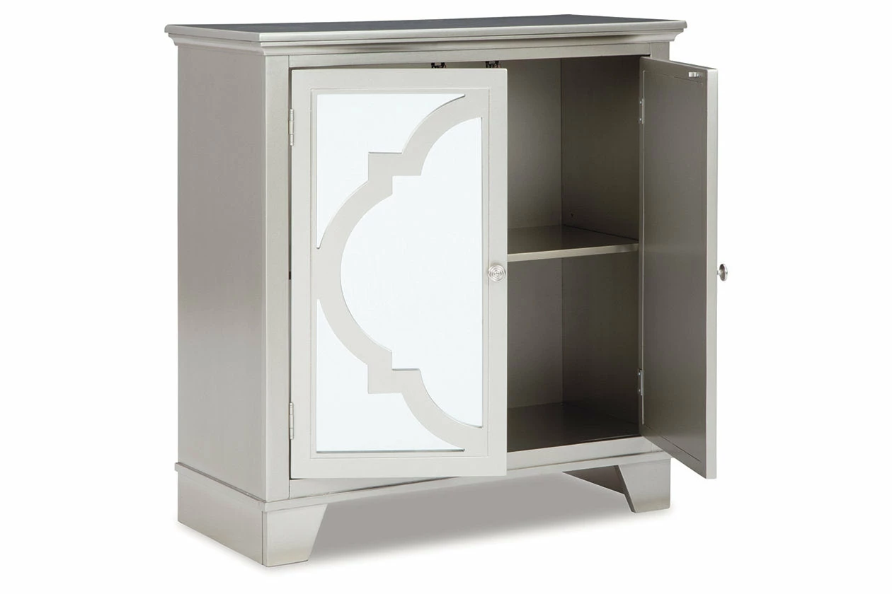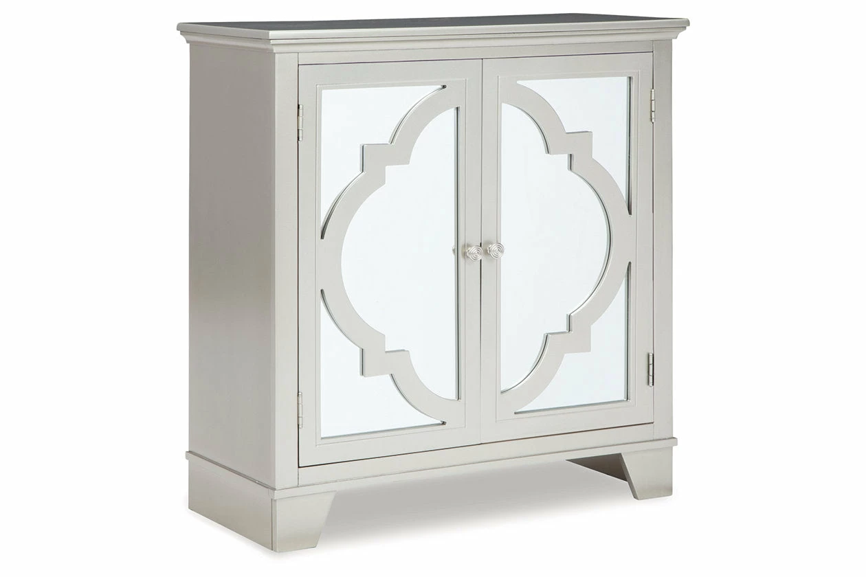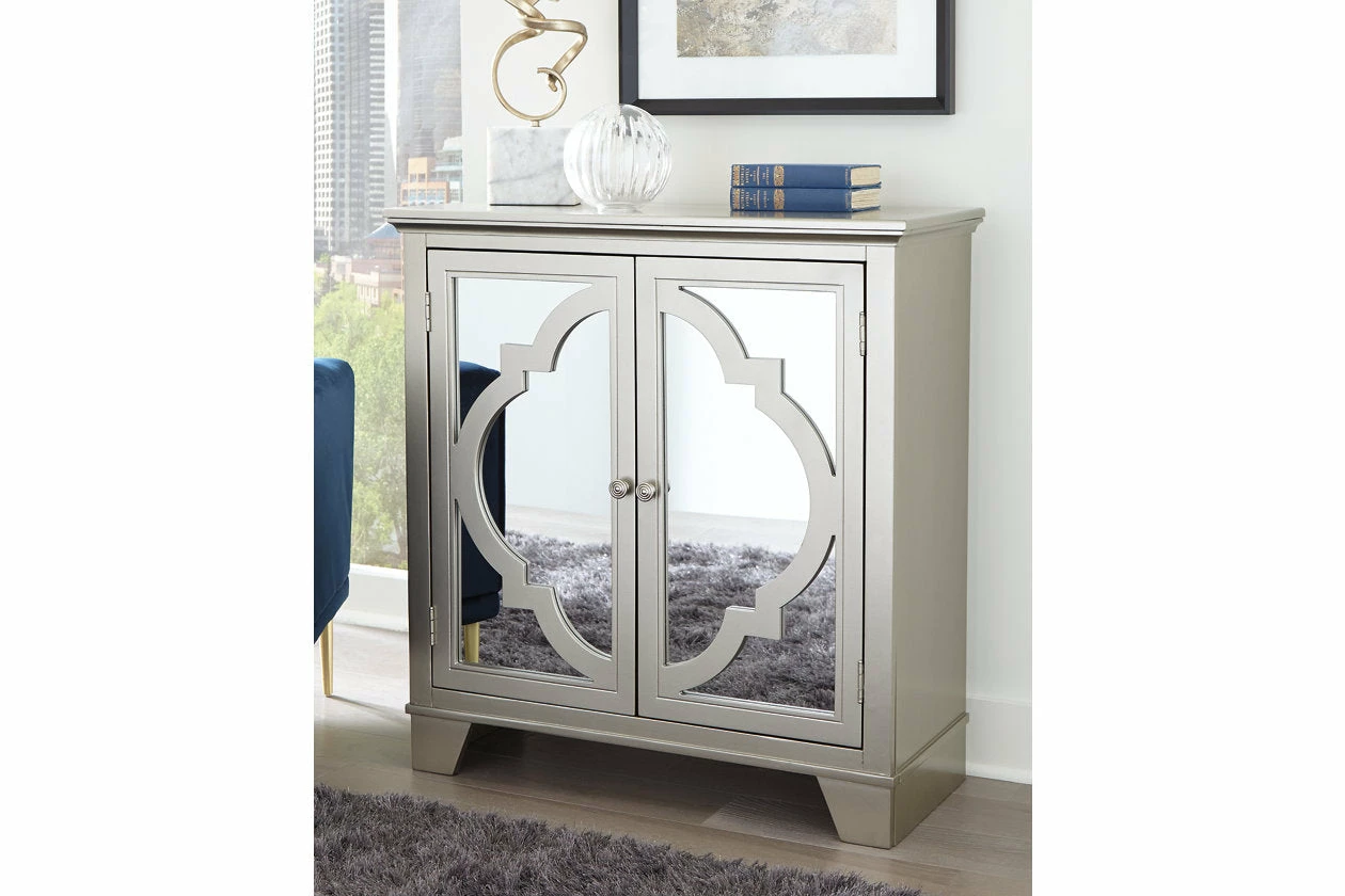 Make a statement with your storage. This accent cabinet features a quatrefoil pattern on a mirror panel door front, elevating your space. Two doors and an adjustable shelf make for multiple storage solutions. With a champagne finish, this accent cabinet creates contemporary elegance with ease.