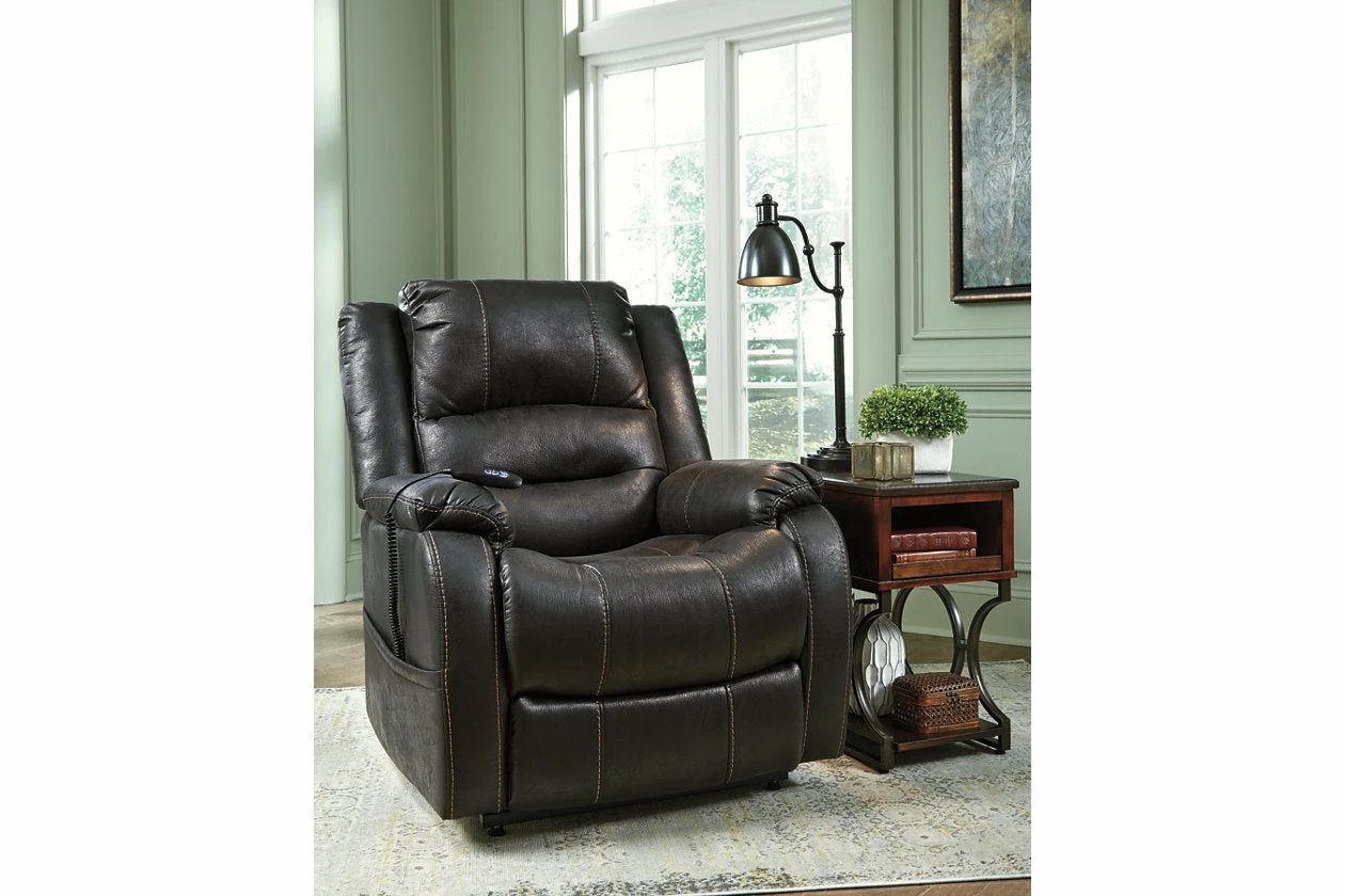 Double your pleasure and your sense of style with this power lift recliner. Dual motor capability gives you the freedom to recline back and elevate your legs independently for more custom comfort positioning. And with the touch of a button, power lift feature gently eases you from the ultimate slumber into a lift-and-tilt position to get you back on your feet, effortlessly. Designer upholstery may look like gently battered leather, but it’s actually a feel-good faux leather with warm, cozy appeal.