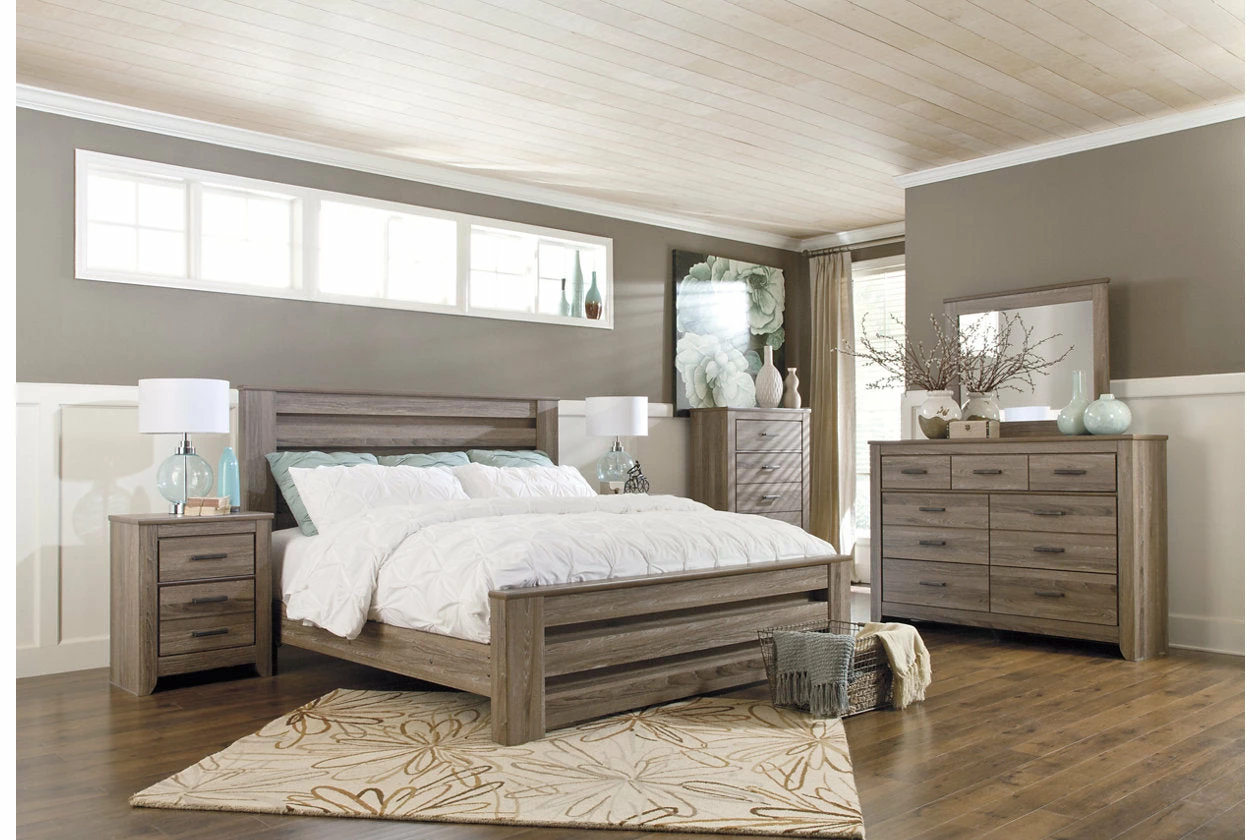 | King Warm Gray Panel Bed | |